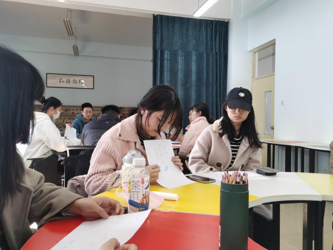 在座的心理委员纷纷表达自己的看法。2020级心理委员李鹤楠说到:“不要让五分钟的坏事破坏自己一整天的好情绪。”2021级心理委员李磊同学表示:“要适当的表达自己的情绪。”