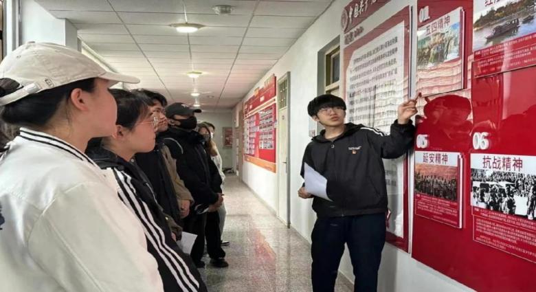 实践活动部分是参观爱国主义基地:文法学院中国共产党人精神谱系展、廉洁文化长廊——“赓续红色血脉,培养时代新人”主题活动。入党积极分子集体观摩学习中国共产党在领导人民进行新民主主义革命的伟大实践中,形成的以民族独立和人民解放为核心的伟大民族革命精神,例如:“红船精神”,井冈山精神,苏区精神,长征精神等。文法学院廉洁文化长廊充分发挥专业特色,深挖法治建设和传统文化中的廉洁元素,学院组织积极分子们参观长廊并聆听讲解,激励积极分子们做到廉洁教育记心间,廉洁文化润心田。