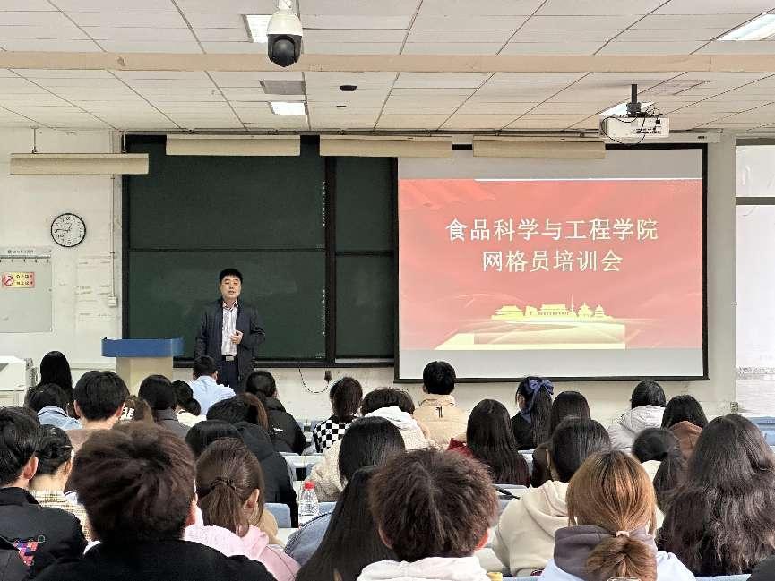 近年来,网格化服务管理成为推进社会治理体系和治理能力现代化的基础性工程。为了培养网格员服务管理能力、提升网格员的基础技能,食品科学与工程学院于2023年3月9日12:40在滨海校区图书馆第一阶梯召开网格员培训会议。本次会议特邀学生处副处长郑秀为同学们进行培训。出席本次会议的人员有:食品科学与工程学院党委副书记聂慎德、团委书记闫寒、2020级辅导员阎帅,2022级辅导员李梓蓉以及食品科学与工程学院22级全体网格员、班委。
