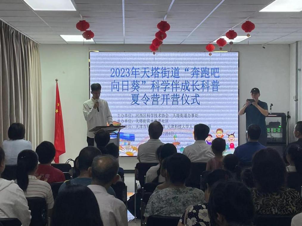 为夯实建设科技强国人才基础,倡导启发式、探究式、开放式教学模式,锻炼大学生社会实践能力,激发中小学生对科学的求知欲和想象力。7月6日上午,人工智能学院筑梦萤火实践团前往宾水西里社区科普馆参加由河西区科协、天塔街道办事处主办,天津市科技馆和天津科技大学人工智能学院共同协办的2023年天塔街道“奔跑吧向日葵”科学伴成长科普夏令营开营仪式。