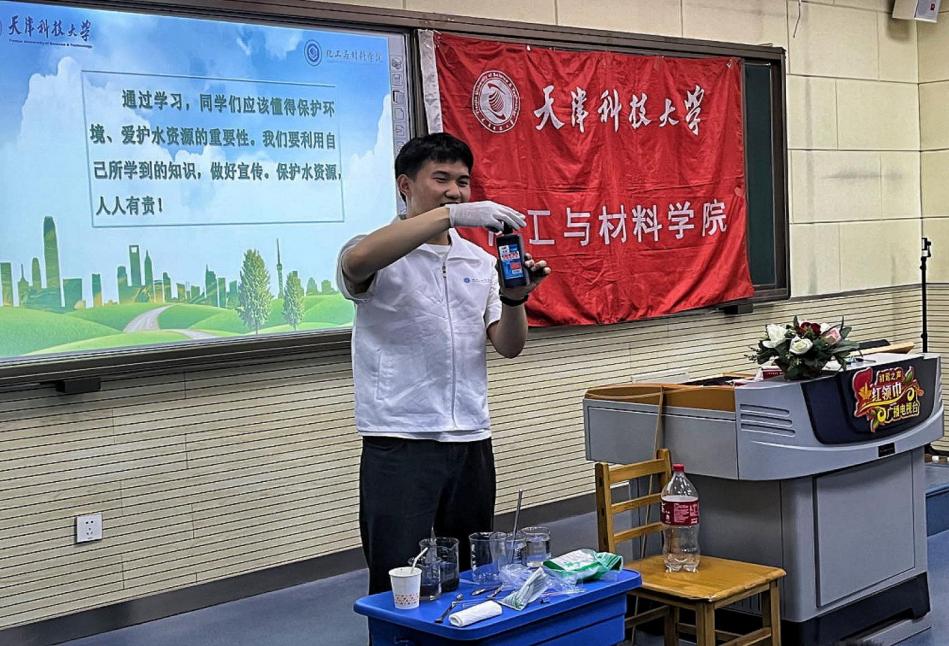 塘沽工农村小学课后服务课堂上,实践团张万庆以“守护清澈的海河”为主题,从天津的母亲河——海河引入讲解水资源保护,结合化工专业知识讲解污水处理方式,引导小学生在生活中保护水资源。同学们认真听讲,积极参与互动,纷纷表示收获颇丰。