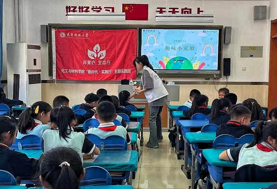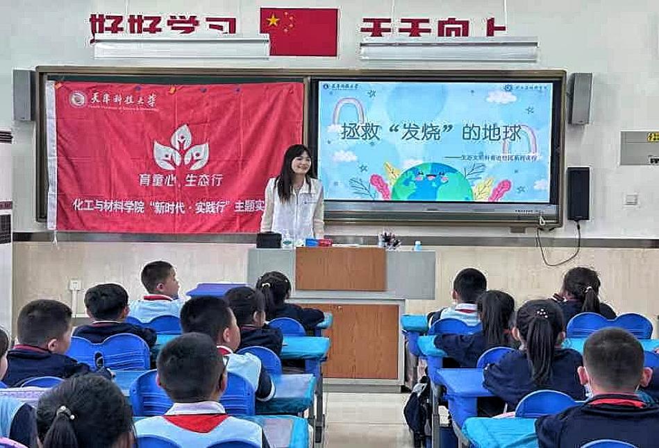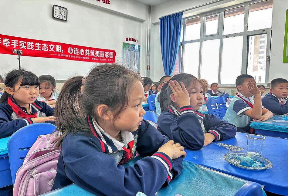 为深入学习宣传贯彻党的二十大精神和习近平生态文明思想,建功天津市“十项行动”,化工与材料学院结合我和我求学的城市系列主题活动,发挥青年大学生志愿力量,服务滨城助力“双减”,推动大中小思政一体化建设,近日,“育童心·生态行”实践团师生持续深入走进塘沽工农村小学、新北第二小学课后服务课堂,开展生态文明科普进校园活动。