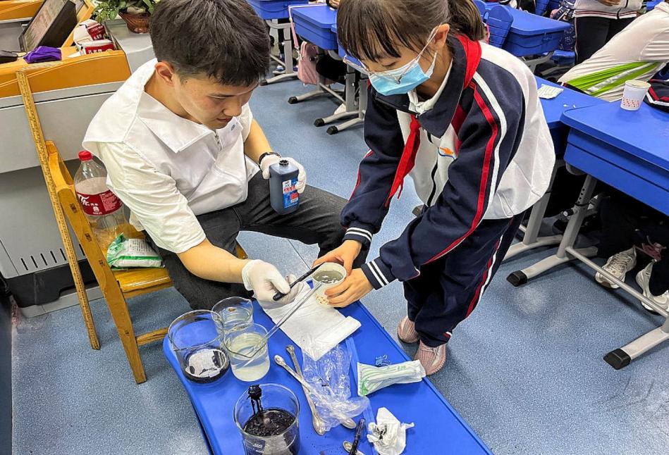 自2022年起,化工与材料学院实践团连续定点在塘沽工农村小学开展生态文明进校园系列主题实践活动,现已走进泰达实验学校、新北二小等多所学校开展课后服务,精心打造环境污染、垃圾分类、废物利用、资源配置等生态科普系列课程,融入“红色思政”元素,结合化工专业知识设计趣味实验,提升课程思政性、趣味性、专业性。学院学生在课后服务实践中“受教育、长才干、做贡献”,以青春力量推动生态文明建设实践,共建美丽中国、美丽天津,努力成长为立足专业的时代新人!