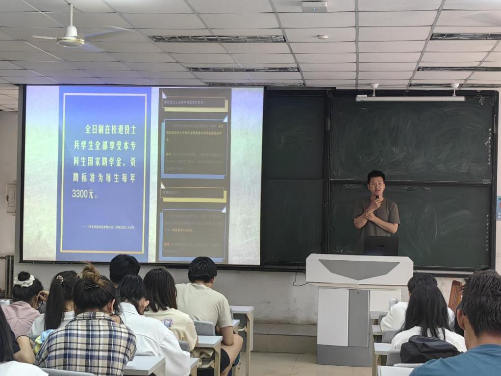 卫国戍边,矢志航天。人工智能学院的于化龙同学曾服役于中国人民解放军驻新疆边远地区部队,军旅生涯荣获“集体二等奖”,成功保研至南开大学。他用生动的故事和真挚的情感向同学们分享了自己在航天部队中的点点滴滴,他希望同学们能通过他的故事得到一些启发,坚定理想信念,增强爱国主义精神,坚定自己的梦想,并为之付出努力。