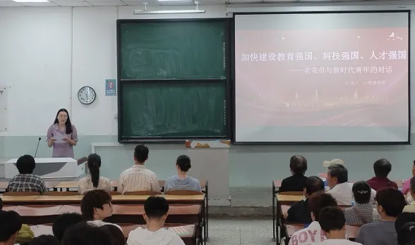 为深入推进习近平新时代中国特色社会主义思想“三进”工作,落实学校“先锋计划”实施方案,切实增强电信学院学子的爱国情、报国志,2024年5月17日中午,电信学院邀请河西区理论宣讲团宣讲员、“最美退役军人”“五老”兰荣珊同志为2023级学生骨干开展主题为《加快建设教育强国、科技强国、人才强国——老党员与新时代青年的对话》的报告会,会议由2023级辅导员张恬畅老师主持。