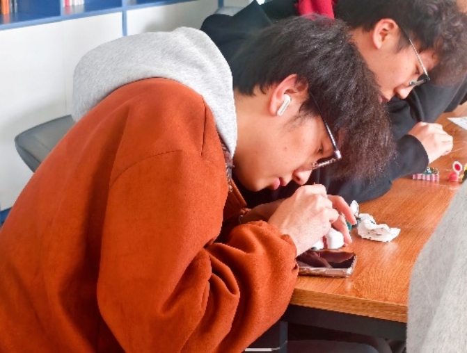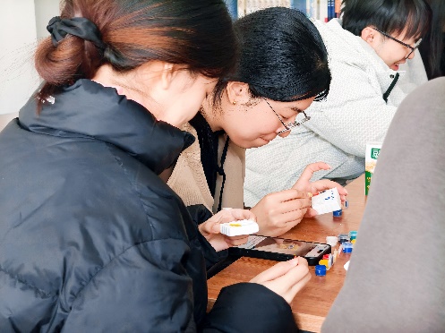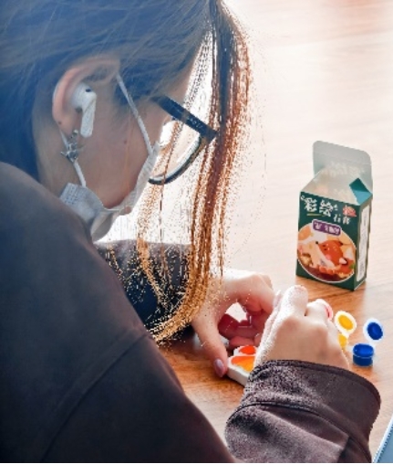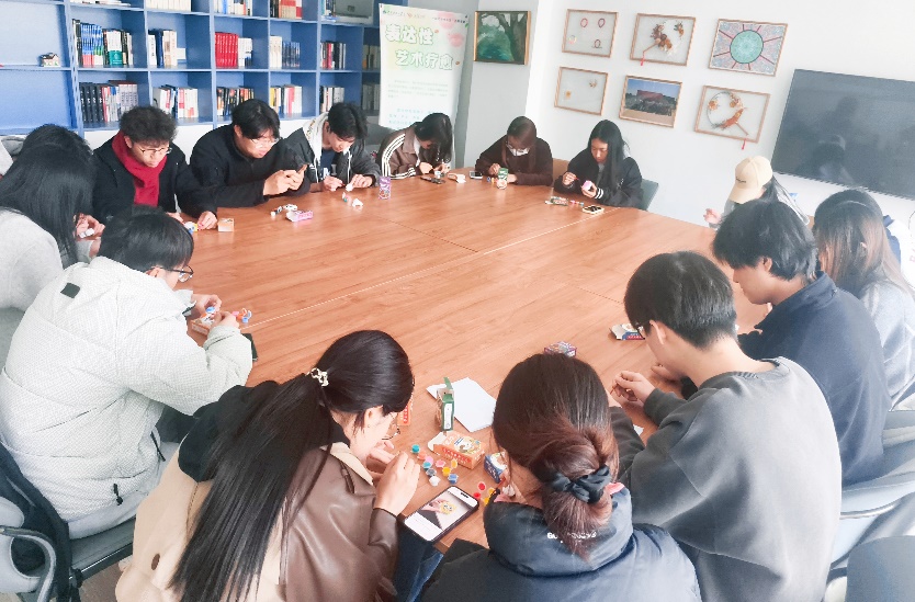 活动现场设置了创意涂色区与盲盒抽取环节。同学们依次开启专属石膏娃娃盲盒,获得形态各异的白色胚模。在轻松舒缓的氛围中,大家专注投入色彩搭配与填色创作,一笔一画细细勾勒,一点一滴用心填充。无需精湛技巧,亦无固定标准,每一种色彩选择都是内心情绪的投射,每一次落笔都是一次与自我的温柔对话。沉浸式的创作过程帮助同学们卸下日常压力,释放负面情绪,在完成作品时收获满满的成就感与幸福感。