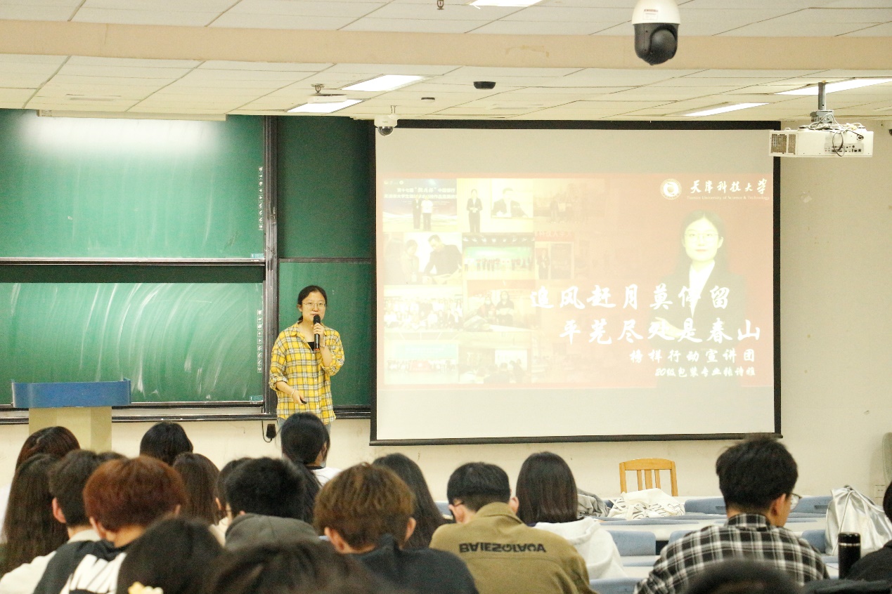 轻工学院的张诗雅结合自己的保研经历分享了如何在大学中努力学习,争创佳绩;李祎彬分享了自己参与创新创业竞赛和研发材料的科研经验,为在座同学之指路点灯。