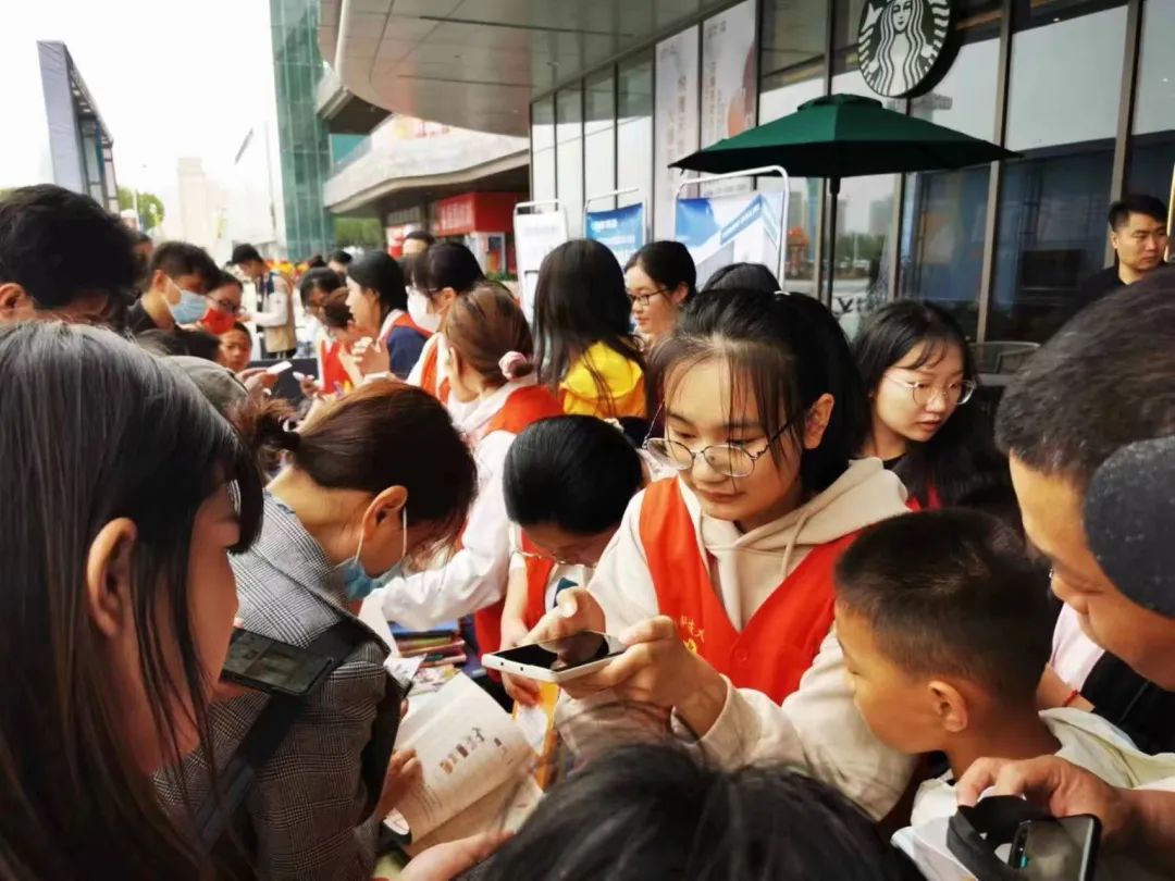 此次活动分为两个部分,一个部分是图书免费领取和图书捐赠,另一个部分是亲子挑战赛。到达活动场地后,外国语学院的志愿者们积极参与活动准备工作,有序布置场地、熟悉活动流程。不同岗位的志愿者们认真工作、热情友好,进行志愿服务工作图书领取岗位上的志愿者们耐心地向路人介绍活动内容,指导他们进行图书免费领取的操作;亲子挑战赛岗位上的志愿者们辅助现场工作人员组织各个家庭,维持活动秩序;比赛结束后,志愿者们积极配合引导,帮忙发放奖品,助力此次活动圆满完成。