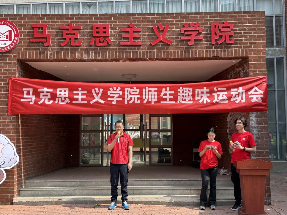 学院领导、教师代表和全体在校研究生参加运动会,运动会由马院研究生回皓宇、郭育含主持,学院工会分会主席杨新莹致辞,学院党委书记黄学锋宣布趣味运动会开幕。