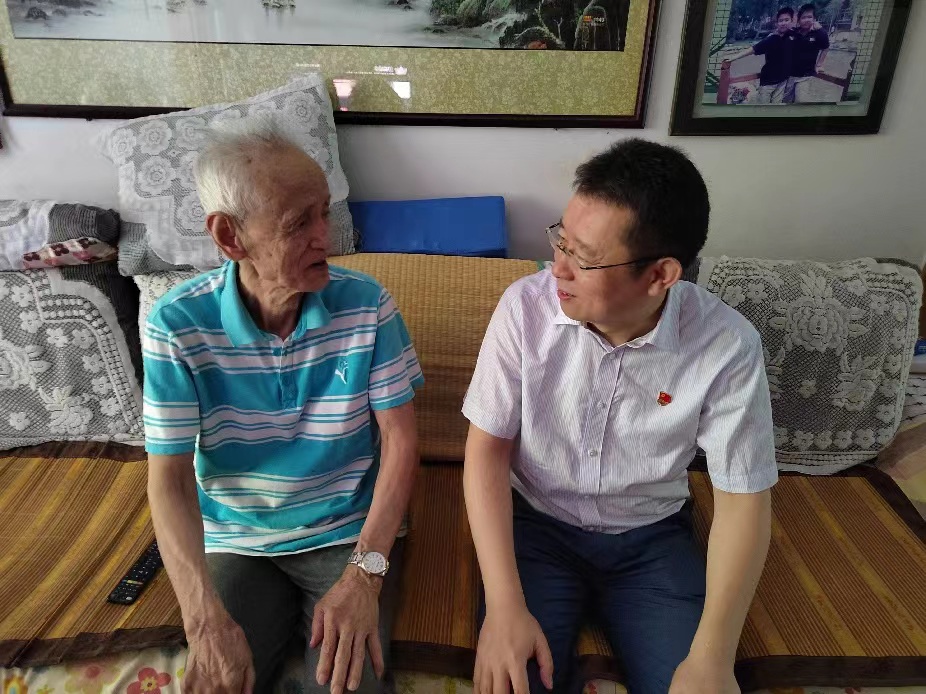 在退休党员何畏同志家中,黄学锋同志与他促膝交谈,嘘寒问暖,了解他的生活、健康状况和家庭情况,对他为党的事业做出的贡献表示感谢,希望他在保重身体的前提下,继续为党奉献余热,一如既往地发挥老党员先锋模范作用。