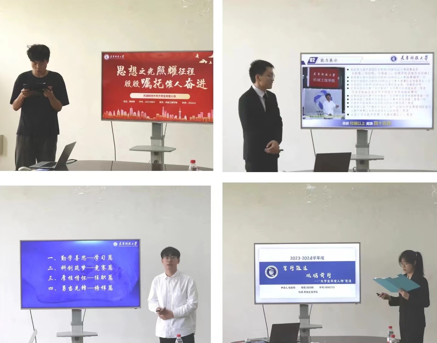 为了深入贯彻党的二十大精神,深入学习习近平总书记视察天津时的重要讲话精神,推进天津科技大学“先锋计划”中“思政铸魂”行动计划的落实落地,切实发挥优秀学生榜样引领的作用,机械工程学院于4月18日中午12:30在12号楼311室召开了“大学生年度人物”评选会。本次大会由评奖评优专项负责老师李苗苗主持,党委副书记王光大老师、团委书记郭琳老师和各年级辅导员参与此次评选大会。