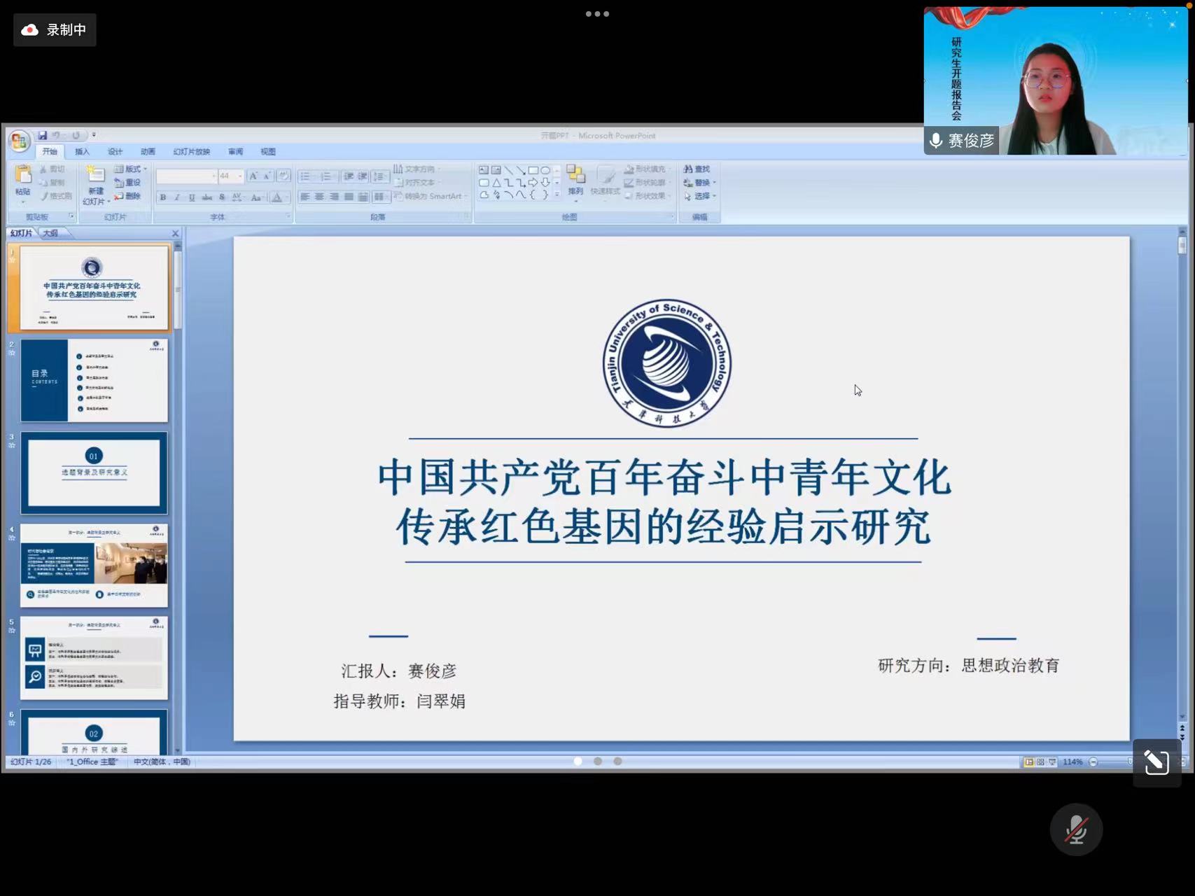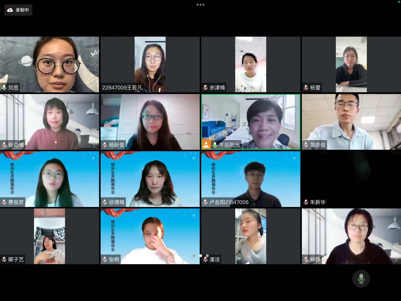 9月28日下午15:30,思想政治教育方向2021级硕士研究生毕业论文开题报告会在线上举行。思想政治教育方向的朱新华教授、闫翠娟教授、杨新莹副教授、张劲楠副教授、杨静逸副教授、杨静博士六位导师及2021级申请毕业论文开题的四位同学参加了会议。同时,2021级其他方向的同学及2022级新生也参会进行了学习观摩。会议由思想政治教育方向带头人闫翠娟教授主持。