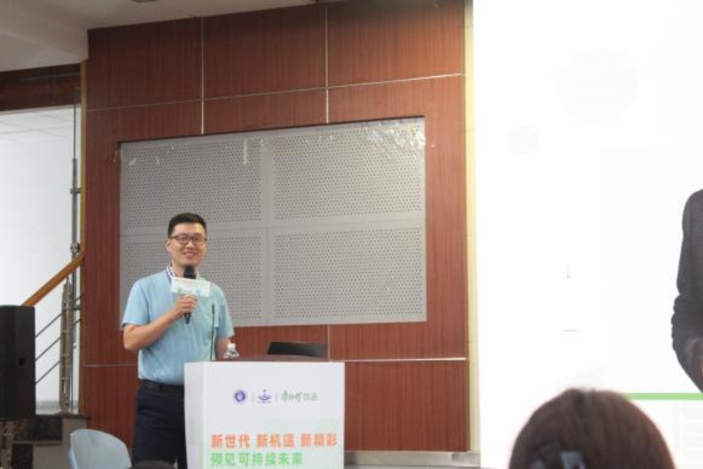 康师傅饮品研发工程师陈凌一带来主题为《新世代、新精彩——康师傅可持续发展成果》的分享。她从研发部门、企业和国家三个不同层面向同学们诠释了绿水青山就是金山银山的内涵,同时也希望同学们能从营养研究、技术创新和消费者洞察等三个方面研发出美味健康环保的饮品。