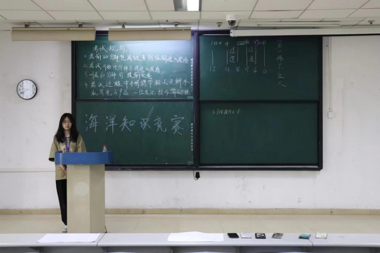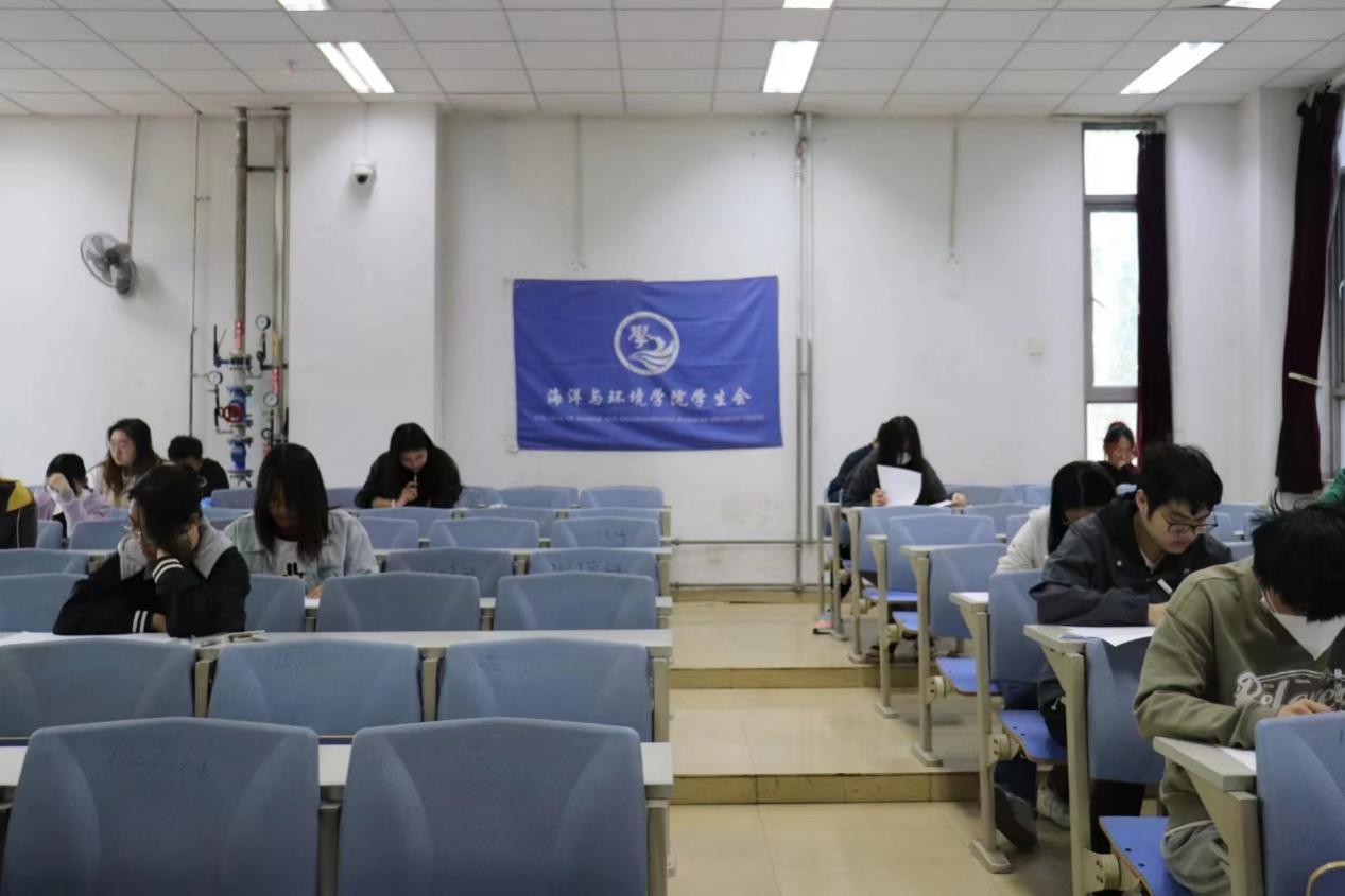 初赛为笔试答题,历时两个小时,共计179名同学参加。由海洋与环境学院学生会组织监考,其内容涉及生态、环保、渔业、气象等各方面知识,对学生海洋知识掌握程度进行了全面的考察。在考试过程中,监考人员认真负责,严格公正,考生们自觉遵守考场纪律,认真作答。考试结束后,同学们有序上交试卷,离开考场。