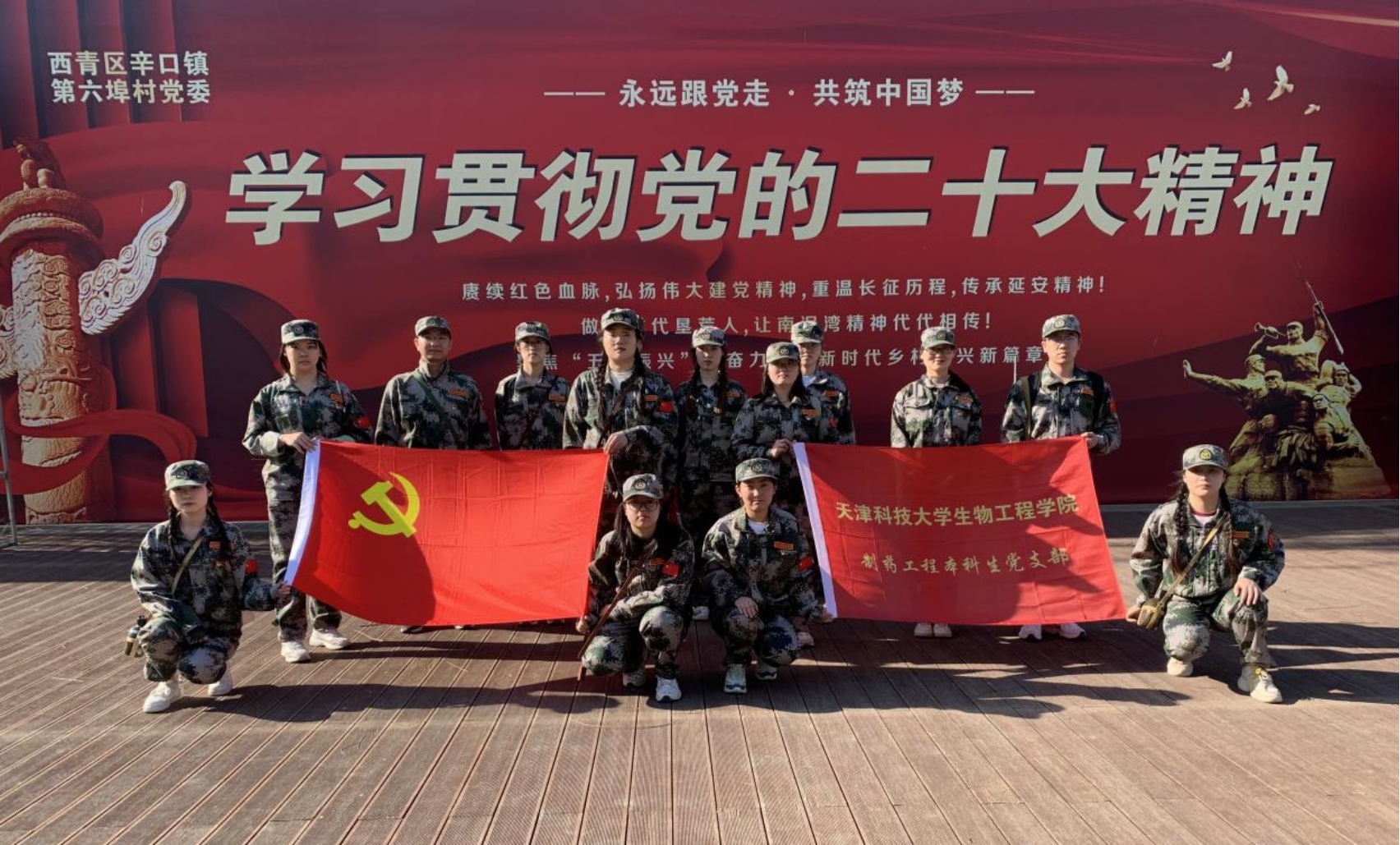 每一代人有每一代人的长征路,每一代人都要走好自己的长征路。为感受红军长征红色遗迹,响应“重走长征路”红色拓展主题党日号召,在学习贯彻落实党的二十大精神开局之年,天津科技大学生物工程学院党委制药工程本科生党支部在支部书记赵华民的带领下,于2023年4月8日前往天津市西青区辛口镇第六埠村党群服务中心开展“追寻红色足迹,守初心担使命”主题党日活动。在追寻红色足迹、解读红色故事中,我们真切领悟、真学真懂、真信真用,传承红色基因、坚定理想信念!