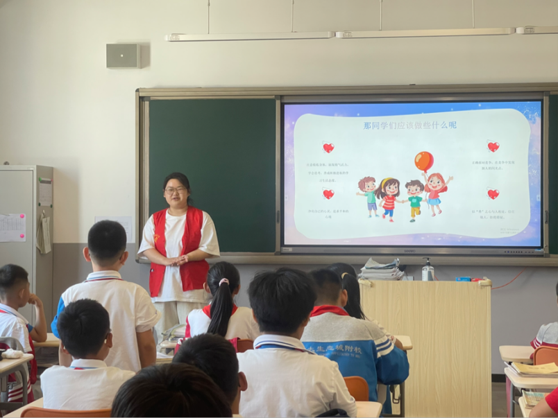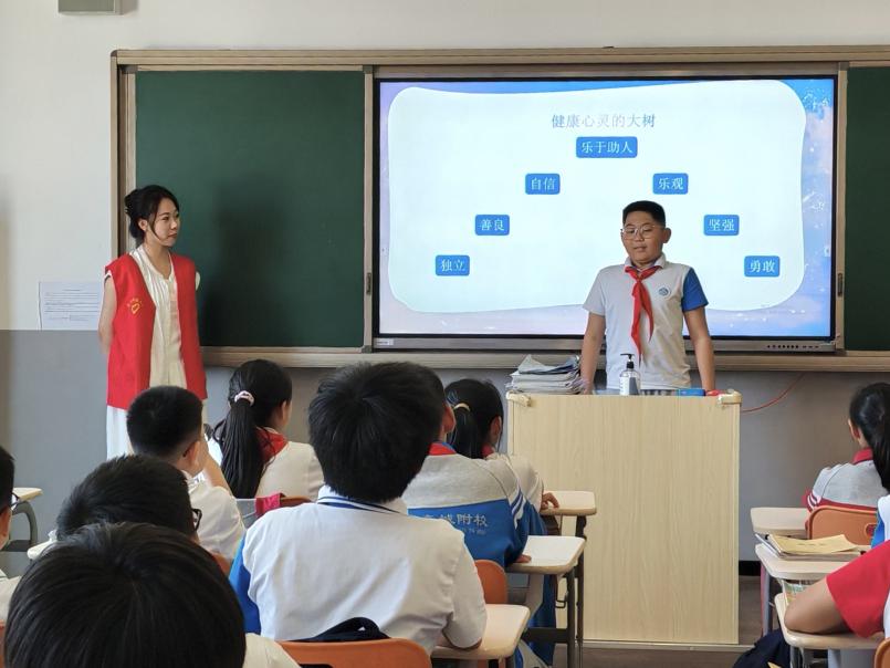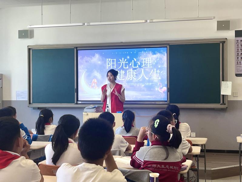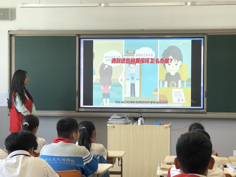 为深入引导同学们认识和理解心理健康的重要性,助力同学们形成积极健康的心理状态,5月13日下午,外国语学院先锋实践队前往生态城北师大附校开展了心理健康教育的主题实践活动。