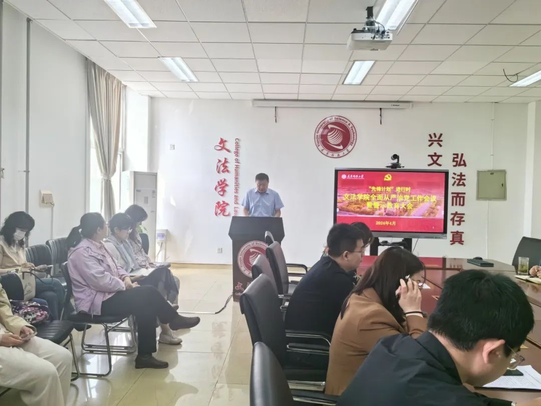4月25日下午,文法学院在滨海中校区7号楼310会议室召开2024年党的建设和全面从严治党工作会议暨警示教育大会,学院全体教职工参加。会议由学院党委书记苟军平主持。