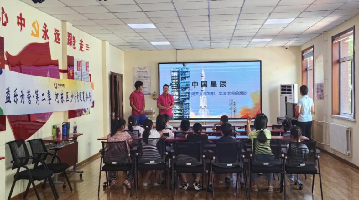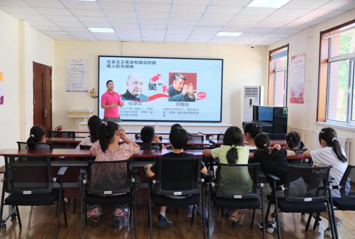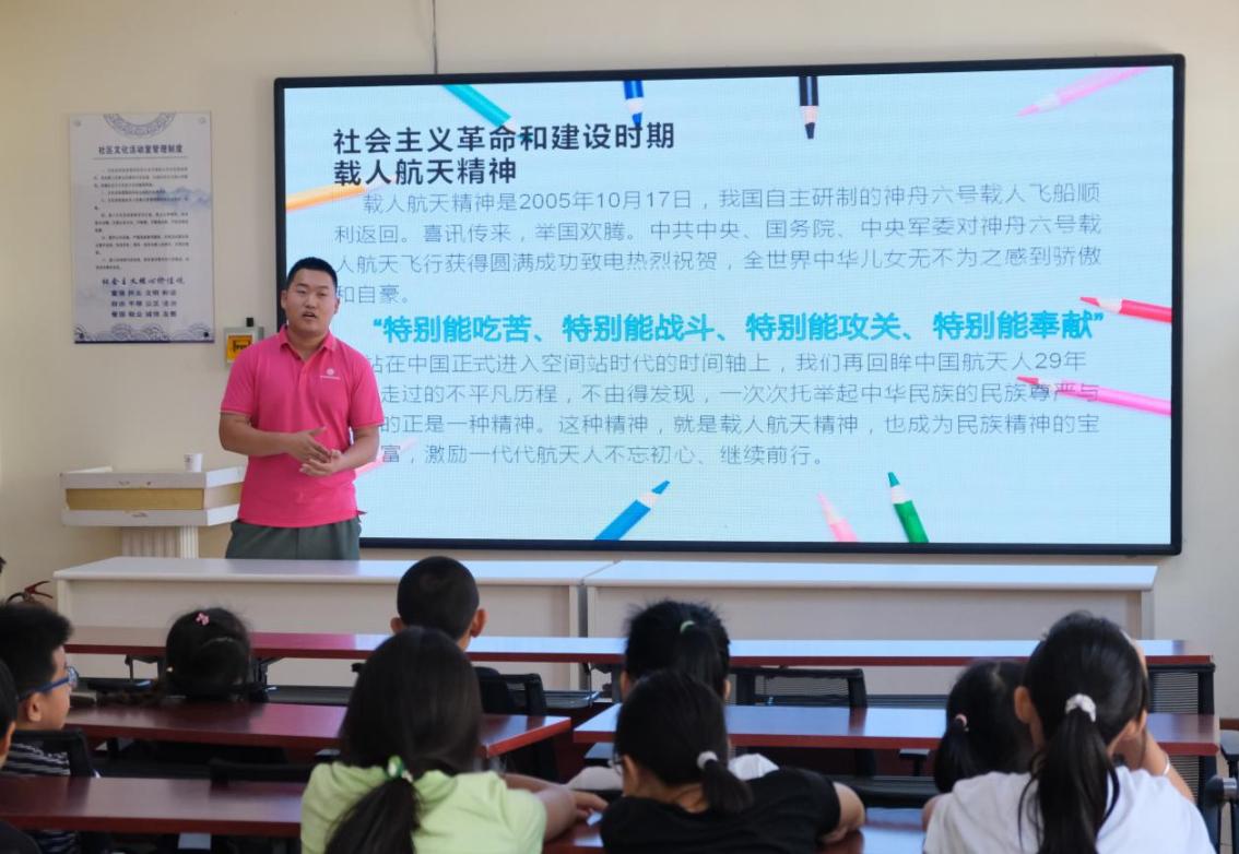 “这片沙漠就是我服役的地方,我在这里度过了两年时光,见证了祖国航天事业的蓬勃发展。”团队成员、曾服役于中国人民解放军原战略支援部队某基地的退役大学生士兵刘源昊生动地讲述着自己的经历与见闻,引来孩子们注视的目光。实践团队通过丰富的历史资料和真实的案例,讲述了从“两弹一星”到载人航天,再到探月工程的壮丽征程,介绍了中国共产党人在航天领域取得的辉煌成就,让孩子们深刻感受到载人航天精神中所蕴含的“热爱祖国、为国争光的坚定信念”“勇于登攀、敢于超越的进取意识”“科学求实、严肃认真的工作作风”和“同舟共济、团结协作的大局观念”。