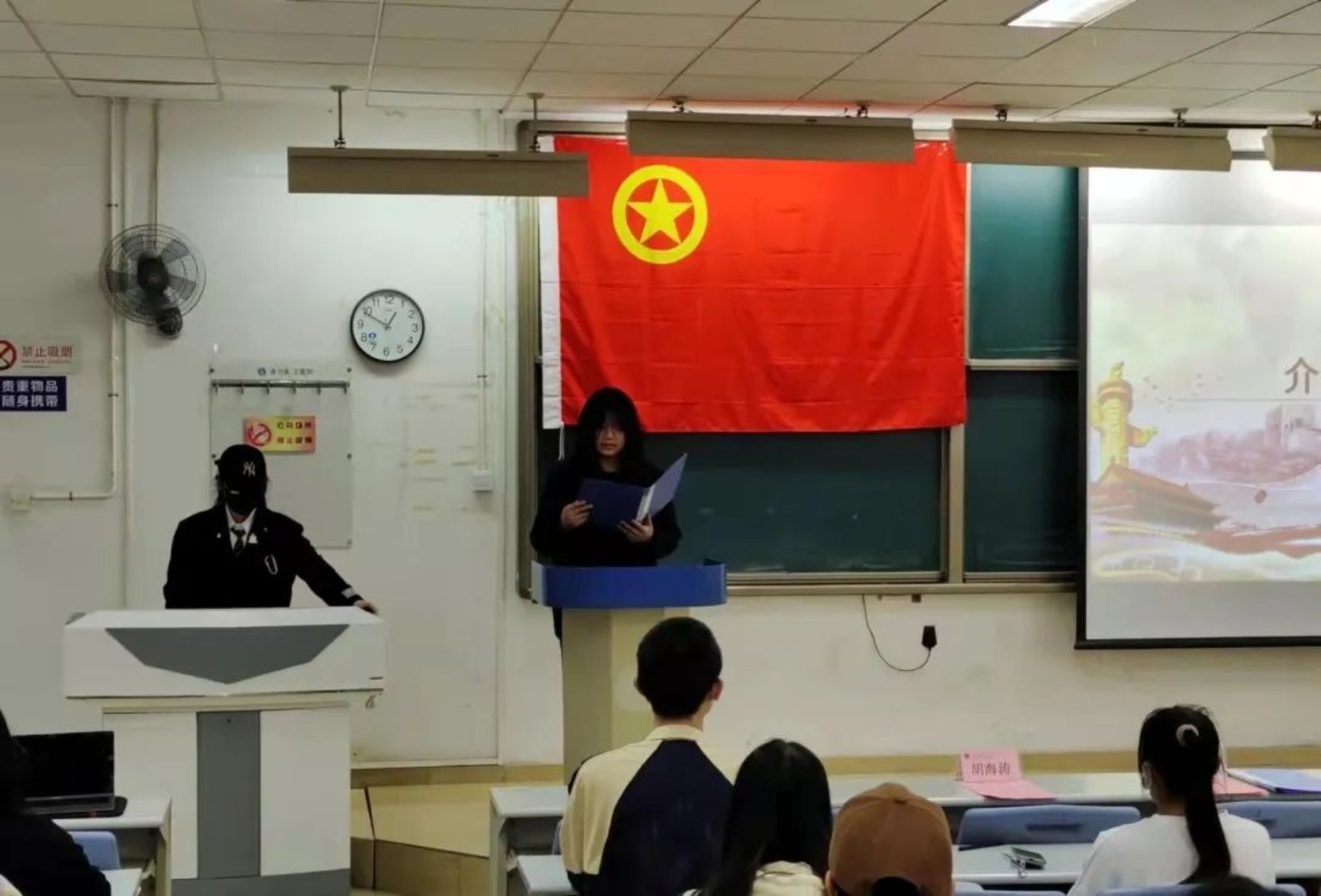 会议伊始,全体成员起立,奏唱中国共青团团歌。同学们在团歌中汲取青春的力量,徜徉在五月的花海里,用青春拥抱新时代,迎接二十大的召开。