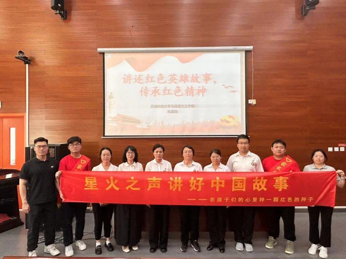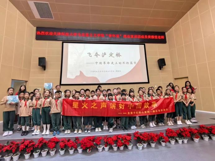 讲好红色故事,传承红色基因。为进一步加强对青少年革命传统教育和党的历史教育,激发其爱国情怀和奋斗精神,天津科技大学马克思主义学院联合中新友好图书馆开展了红色故事进校园系列活动。本次系列活动充分将马克思主义学院研究生的学科优势与中新友好图书馆的红色资源相融合,合力为生态城3所学校近千名小学生讲述红色故事,将书本里的文字变成沉浸式的课堂。