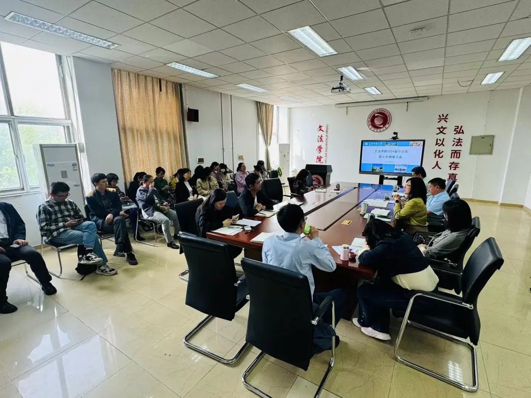 为进一步推动学院2024届毕业生就业工作,落实学校高质量内涵发展“先锋计划”,做好学院全员育人促就业这篇民生大文章,文法学院于4月25日召开2024届毕业生就业中期推动会,会议由院长吴振军主持,学院全体教师参加了会议。