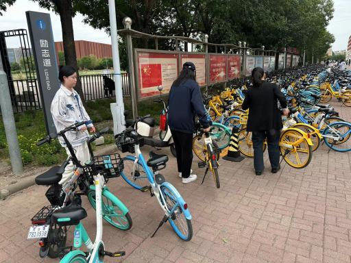 在滨海中校区新食堂、五号楼、三号楼前,面对随意摆放的共享单车,支部党员眼明手快、干劲十足,引导来来往往的同学有序摆放自行车,并将“迷路”的单车带回到正确的位置,把分散的单车进行紧凑整齐的摆放,有效解决了原先车辆乱停乱放和占用道路的问题。