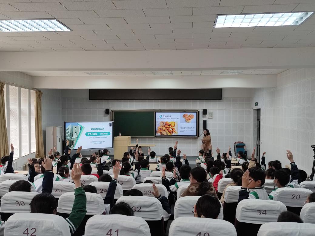 签约仪式后,乔丽萍面向小学三年级学生开展了“食安小课堂”科普讲座,从零食的分类、零食的制作方法以及合理食用零食等展开,带着同学们一起探秘零食。互动环节,学生们兴趣盎然、踊跃举手。面对“水果是零食吗”的疑问,乔丽萍通过辩证思考带同学们学习理解零食的定义,重点讲述了吃零食的六大原则。课后,同学们表示受益良多,今后要适当食用零食,多吃水果、牛奶、坚果类,少吃油炸食品、少喝碳酸饮料等。