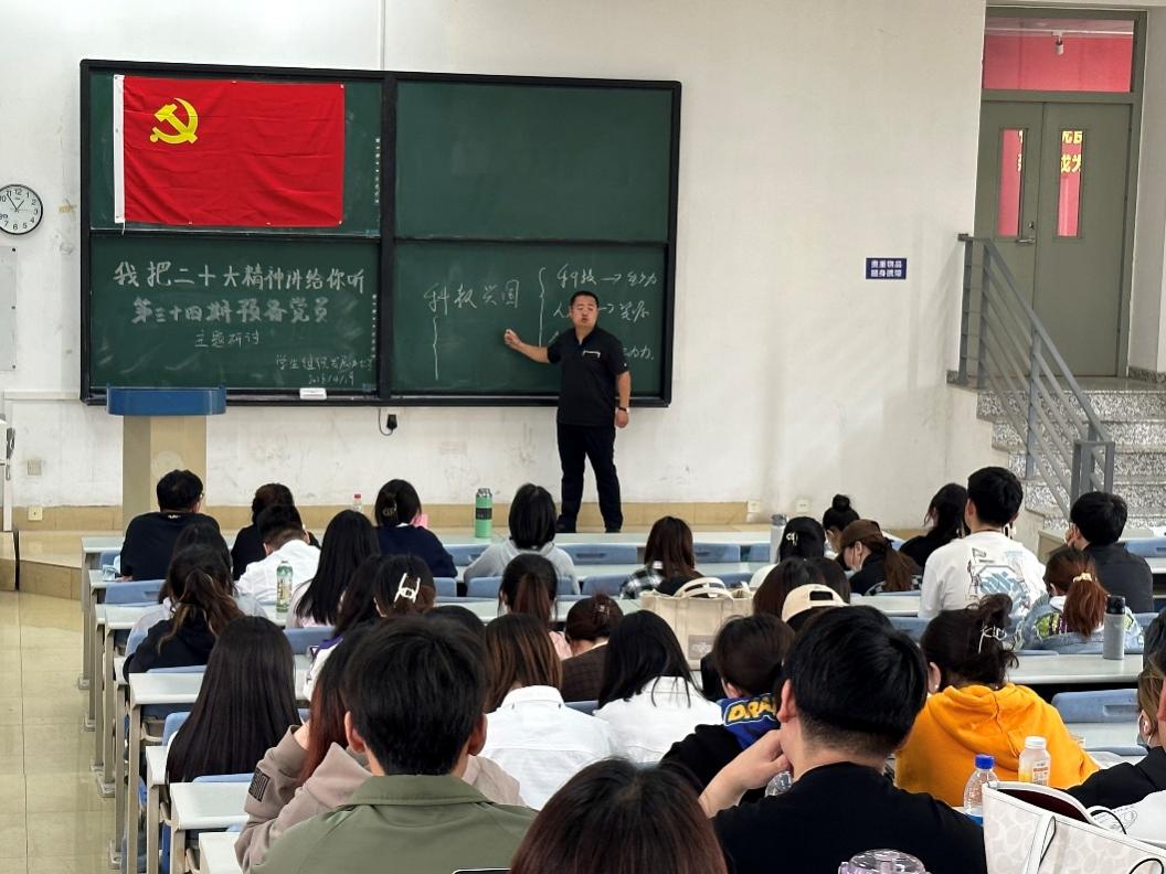 2023年4月19日中午,经济与管理学院第三十四期预备党员培训班主题研讨活动在滨海中校区九号楼第七阶梯教室顺利举行,活动主题为“我把党的二十大精神讲给你听”。学院团委书记霍士磊老师围绕党的二十大精神,与各位预备党员一起,进行了全面深入的学习与讨论。