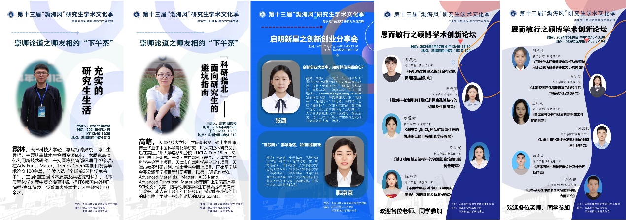 为深入学习贯彻党的二十大精神和习近平总书记视察天津重要讲话精神,落实我校“先锋计划”行动,切实推进研究生思想政治教育工作,提高学生学术科研思维和创新创业能力,轻工科学与工程学院以立德树人为根本,以“勇争先开拓进取,善作为力当先锋”为主题,全力开展“渤海风”研究生学术文化季系列活动,共计开展各类活动7场,覆盖全院300余人次研究生。