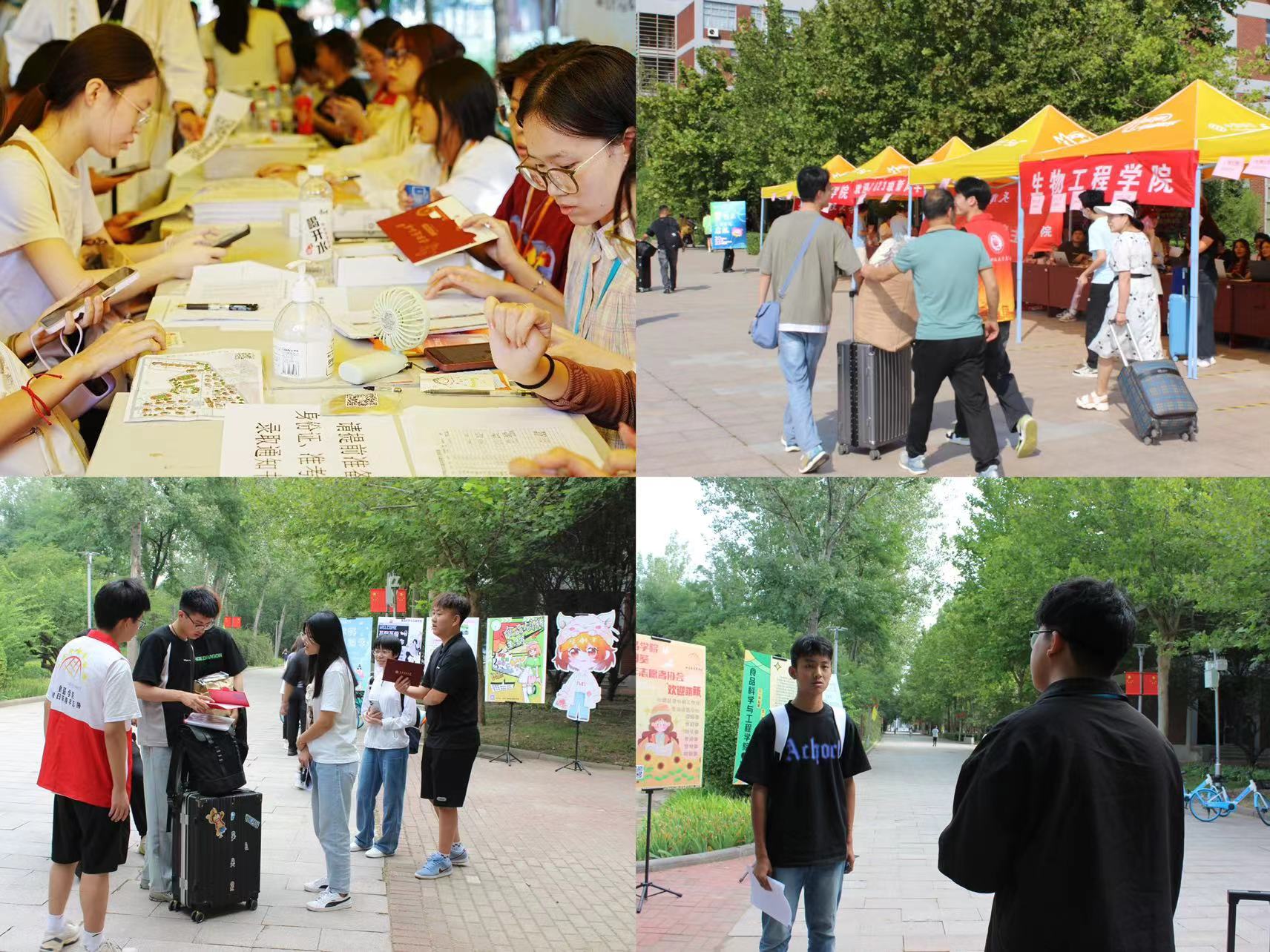 9月2日早,迎新志愿者们即开始在迎新场地布置会场。志愿者们抬放桌椅、搭建帐篷、准备新生报到手册等各项工作开展地有条不紊,确保新生报到流程快速、有序。随后,迎新志愿者们按照新生辅导员张艺老师与乔叶宁老师的工作安排,分别在学校南大门、西北门、报道处等场地,开展新生迎接、报道、采访、路线引导、行李搬运等各项工作,确保将每一位新生准确安全地送至宿舍。迎新志愿者们皆不辞辛苦、来回奔波、积极帮助每一位科大学子,体现了食品学子乐于奉献的宝贵品质,同时展现了食品学院良好的院风院训。准备工作结束后不久,新生们陆续入校报到。他们朝气蓬勃,青春飞扬,满怀憧憬与希望的踏进天津科技大学的校门,走向了属于自己的学院、自己的未来。