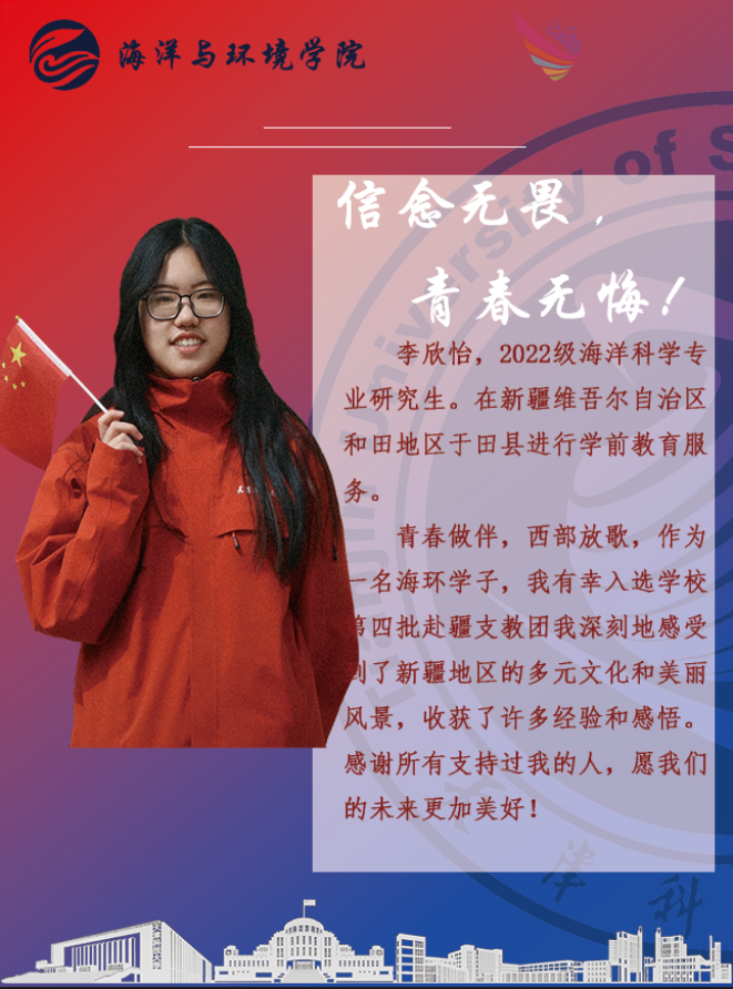 青春作伴,西部放歌,让支教成为青春与童年的相互奔赴,她教给孩子们的不仅仅有科学艺术,还有拳拳爱国之心的赤子情怀。孩子们送给她的不仅仅是充满欢声笑语的每一天,还是无尽的快乐和幸福,他深知新时代青年身上的重任,到西部去、到基层去、到祖国和人民最需要的地方去。