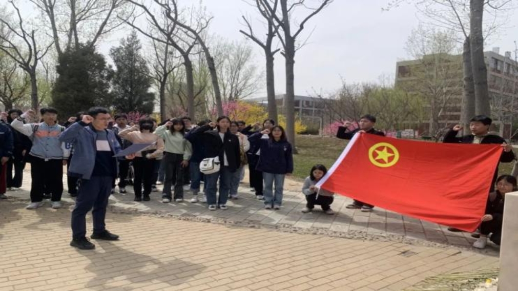 活动伊始,全体人员在天津科技大学校内朱颖烈士雕塑前列队缅怀,并合唱《义勇军进行曲》,铿锵的曲调激励人心,提振精神。随后,王姝瑾同学对朱颖烈士的生平事迹进行介绍,带领全员向先烈致以敬意并全体默哀。面对鲜红的团旗,团委书记穆庆夏作为领誓人,带领支部全体成员一起高举右手庄严宣誓,重温入团誓词。参会同学们表示,通过此次活动再一次体会到了作为一名共青团员的责任感和使命感,坚定了做党的助手和后备军,为共产主义事业而奋斗的信念。