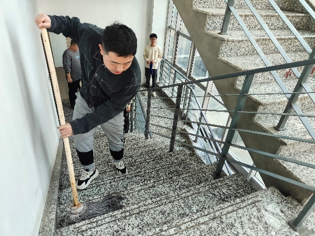 3月14日,理学院的学生宿舍、办公楼楼道、会议室和辅导员工作站等区域到处都充满着热烈的劳动气氛。数十名研究生同学们在学院的组织下手持清洁工具,有的手持扫把清扫灰尘,有的推动拖把擦拭地板,有的手握抹布清洁门窗,大家分工合作,争先恐后,再次开展了一次校园卫生清扫集中劳动。
