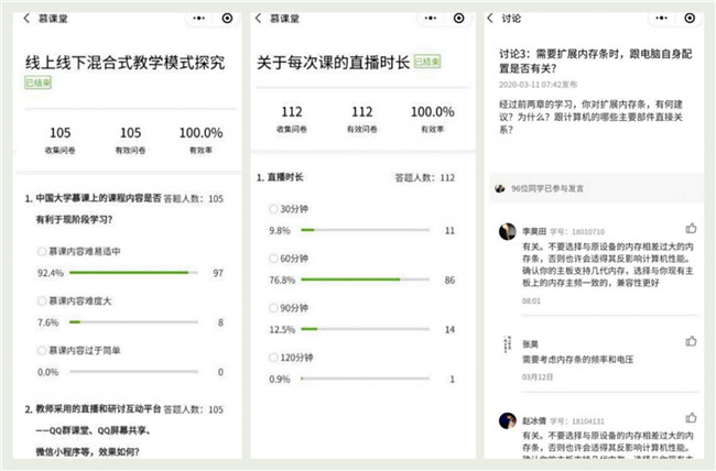 于洋老师作为系主任,在开学的前两周就开始动员系里全体教师。通过视频会议进行线上教学研讨,集思广益尝试多种授课平台,赵婷婷、吴超和刘建征等老师们均录制了平台的使用方法,并分享到科大云盘。由于计算机专业出身,老师们对平台使用方法也掌握得很快。在仔细了解过各个平台后,最终确定中国慕课和QQ群的屏幕共享作为教学主要平台,辅以微信小程序"慕课堂"进行师生间的课堂互动环节。在线教学新生活也由此正式拉开序幕。