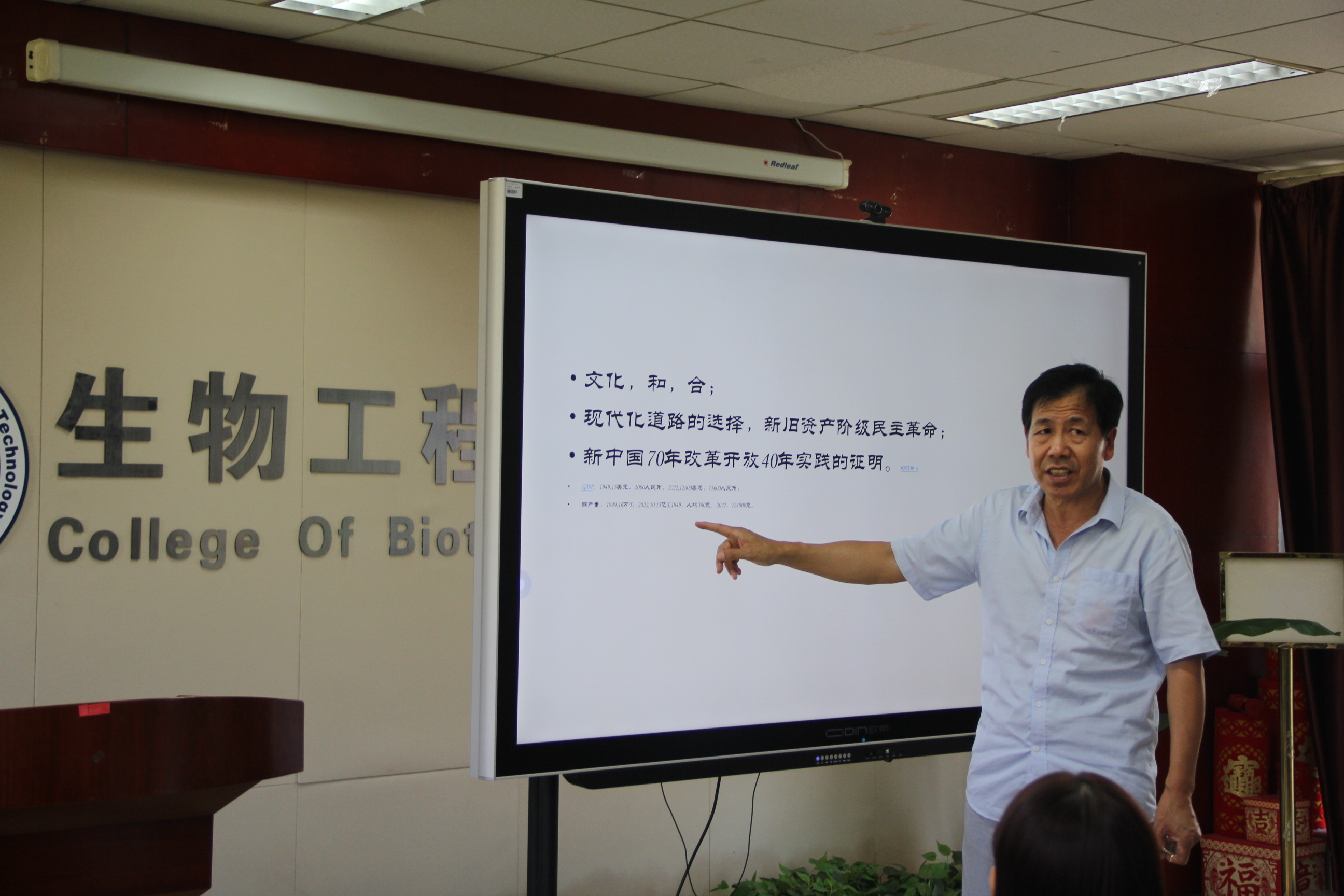 为深入学习贯彻习近平新时代中国特色社会主义思想和党的二十大精神,落实教育部关工委和天津市教育系统关工委关于2023年“读懂中国”相关活动精神,增强青年学生对党的二十大精神的领悟和对习近平新时代中国特色社会主义思想的学习深度,6月21日中午,在滨海中校区2号楼206 会议室,生物工程学院与校团委联合举办了青春讲堂暨生物工程学院知行讲堂第七十七讲“中国式现代化——一种更优越的发展模式”的宣讲培训会。本次培训由天津科技大学关工委宣讲团成员、学校马克思主义学院退休教授刘阁春主讲,生物工程学院党委副书记曾昭晔、学院辅导员代表、全体青马工程学员、入党积极分子和学校各学院学生代表参加,生物工程学院团委书记任艳萍主持。