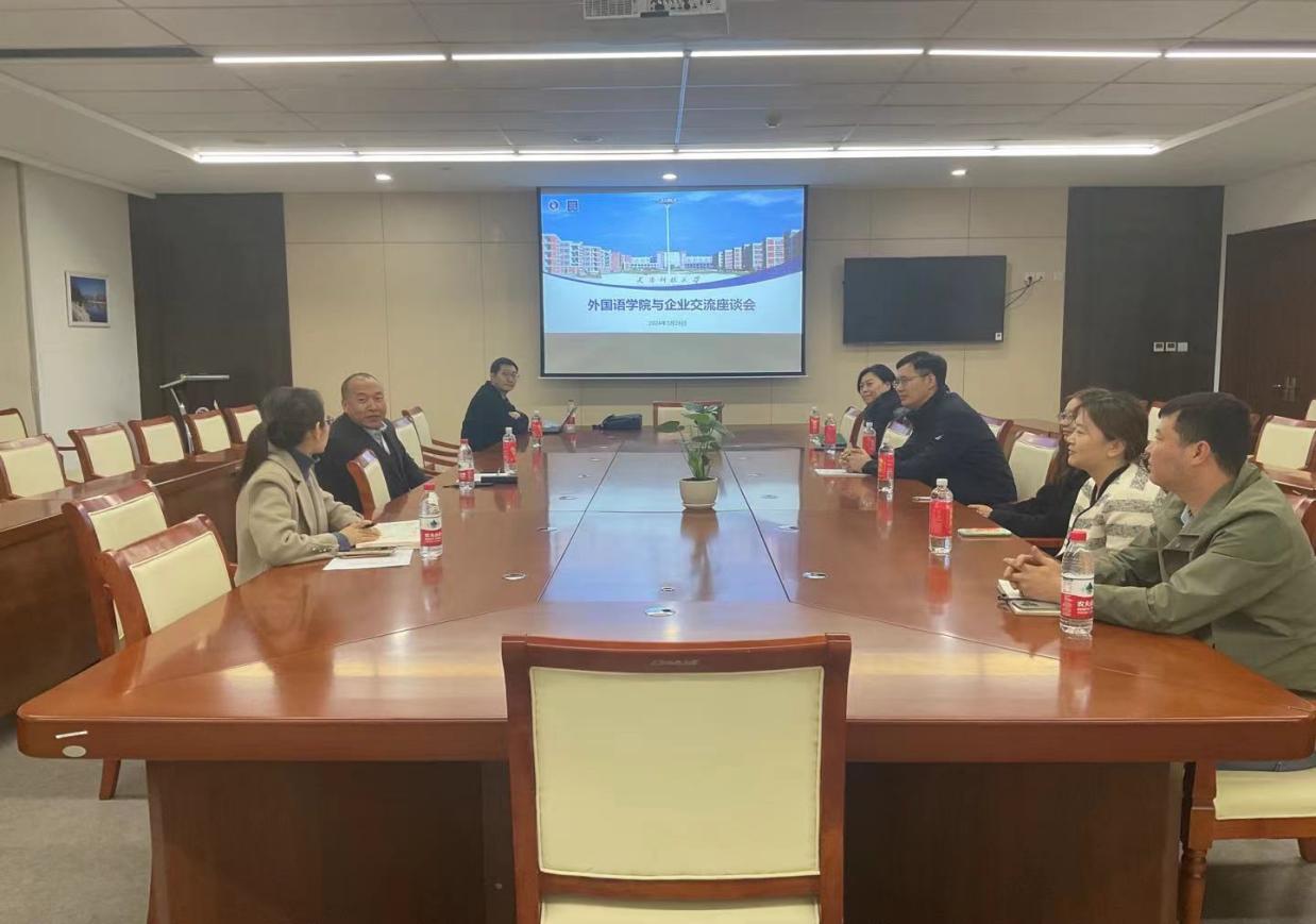 座谈会上,潮洛蒙院长向企业代表们详细介绍了学院的历史沿革、学科概况、师资力量、学院以及学生获奖情况,并重点向介绍在学校“先锋计划”指引下外国语学院的未来改革方向——“外语+”的创新性构想。企业代表对学院提供的招聘平台表示感谢,并对外国语学院教育成果表示肯定。随后,企业代表就行业情况、发展方向以及用人要求等方面进行介绍,并表示:“行业仍需要优质外语人才的加入。”同时,企业表示希望能够加强企业与学校、学院之间的联系,希望学校能够对企业进行精准人才输送,同时也欢迎学生去到企业进行实地考察。