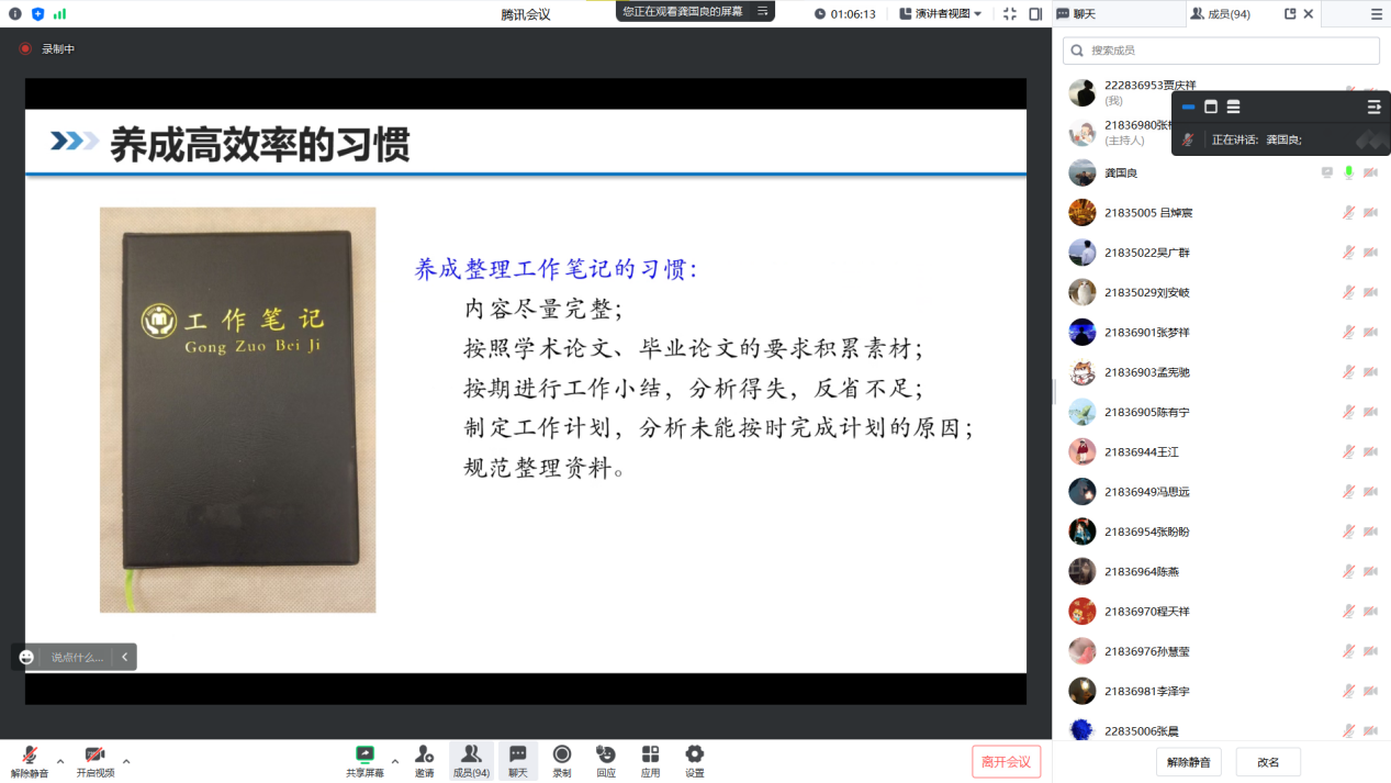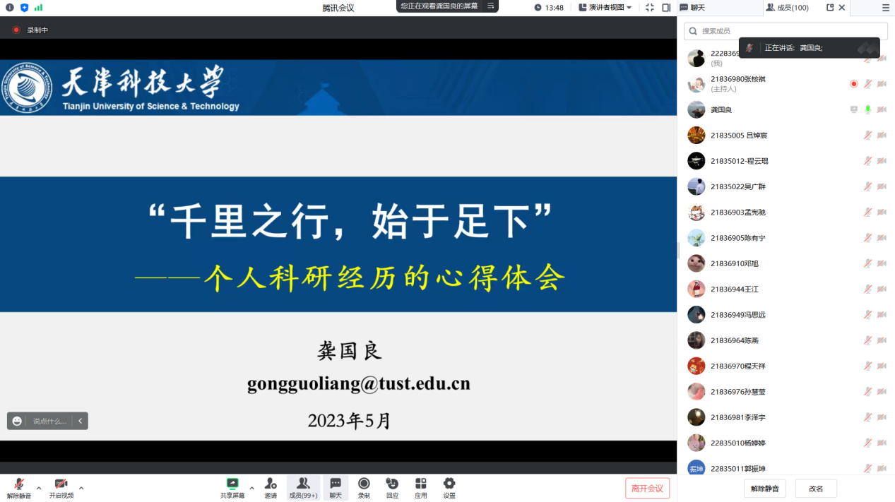 为帮助我院研究生顺利展开科研生活,营造浓厚的学术科研氛围,提升同学们的论文写作水平和学术创造力,5月29日下午,人工智能学院研究生会积极开展崇师论道之师友相约“下午茶”活动,邀请到了人工智能学院硕士生导师龚国良老师在线上为全体研究生带来以“研究生导师的千里之行,始于足下--个人科研经历的心得体会”为题的讲座。