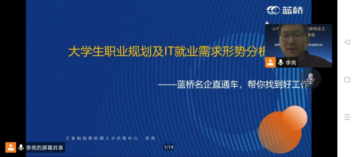 为引导高年级学生群体深入了解就业形势,确立更加清晰的未来生涯规划,缓解面临前途问题的迷茫焦虑情绪,2022年11月天津科技大学人工智能学院邀请工业和信息化部人才交流中心的李亮老师为高年级群体进行大学生职业规划及IT就业需求形势分析。