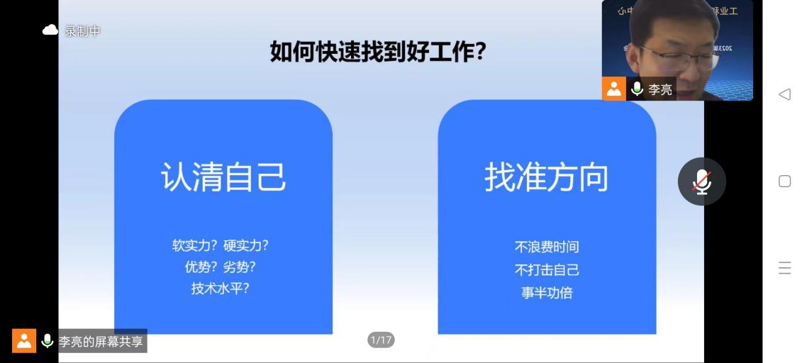 在此次活动的主要部分,李亮老师就应届生未来工作规划这一方面对今年秋招及明年春招进行了形势上的分析。同时,李亮老师向同学们解释了今年就业形势以及同学们应该做的准备,并对公司招聘要求进行分类,为高年级学生提供了较为直观的形势图表,让高年级学生群体更好了解企业对于人才的需求方向以及培养方向,希望同学们可以根据自身特点寻找合适的岗位,认识清楚自己的实际情况,提高该群体进入理想就业岗位的信心,为即将迈入国家建设事业的他们提供更加明确的准备方向。