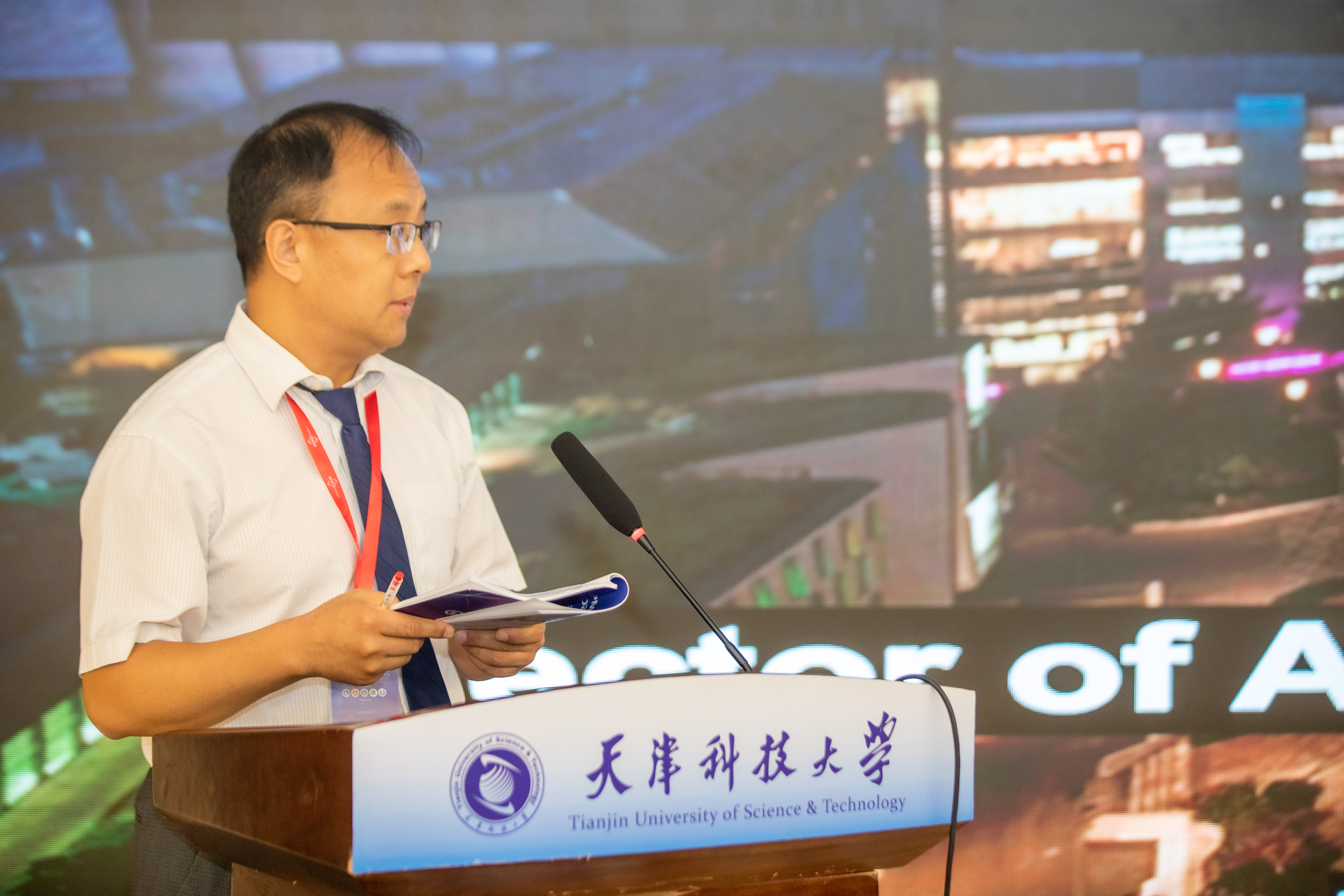 天津科技大学校长路福平教授作为大会名誉主席致欢迎词。他对尽管日程繁忙仍能出席SPML 2023的所有嘉宾表示热烈的欢迎和感谢,介绍了学校的发展历史和基本情况。他希望,在接下来的几天里,大家能够进行富有成果和收获的交流。