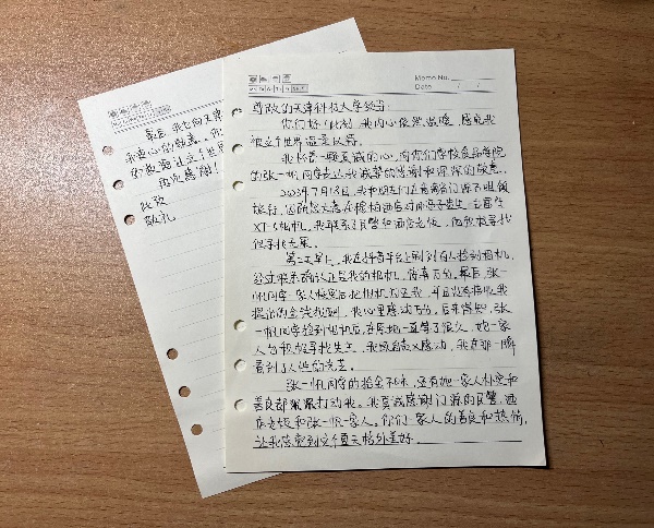 梁先生不仅当面表示感谢,还特意向学院寄了一封感谢信,赞扬了张一帆的品德与高尚行为。在感谢信中,他写道:“张一帆同学的拾金不昧,还有她一家人朴实和善良都深深打动了我。我真诚感谢门源的民警、酒店老板和张一帆一家人。你们一家人的善良和热情,让我感觉到这个夏天格外美好。”信的最后,梁先生还对天津科技大学老师们表达了衷心的敬意。