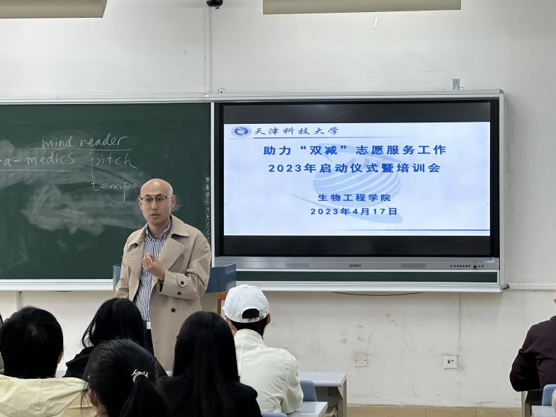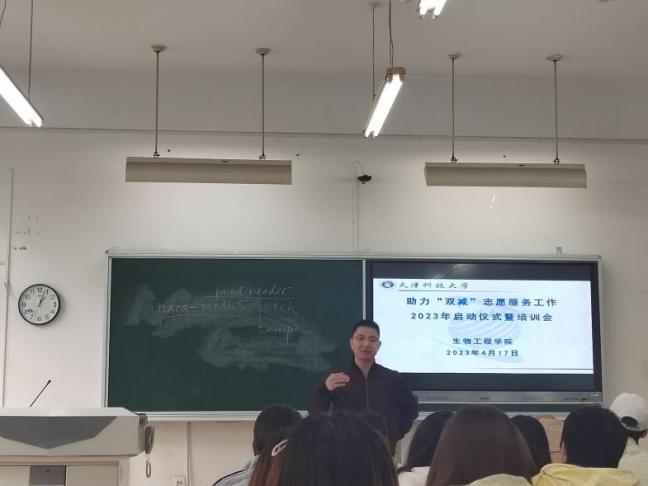 为发挥天津科技大学生物工程学院学生志愿服务和社会实践的人力优势和专业优势,切实开展学生劳动教育和实践教育,4月17日中午,生物工程学院在滨海中校区3-112召开2023年度助力“双减”志愿服务工作启动仪式暨培训会,生物工程学院2019级本科生辅导员田凯老师、2021级本科生辅导员赵华民老师参加,2022级本科生辅导员凡会强老师主持。