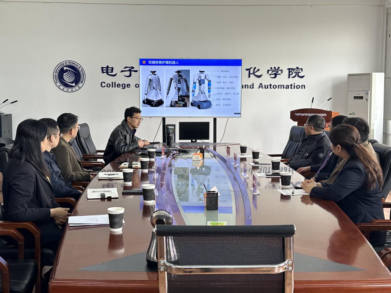 随后双方围绕青少年机器人教育工作进行座谈交流。座谈会上,卢浩老师代表机器人教研室向来访一行介绍了教研室在机器人领域的研究方向和研发进展,从科普讲座与实物展示、机器人竞赛活动和师生常态化交流机制三个方面分享了关于青少年机器人教育的设想与实践。座谈会整体氛围良好,交流内容涉及双臂移乘护理、康复、仿生眼、导丝导管协同穿刺、电子皮肤、人形机器人等前沿技术。