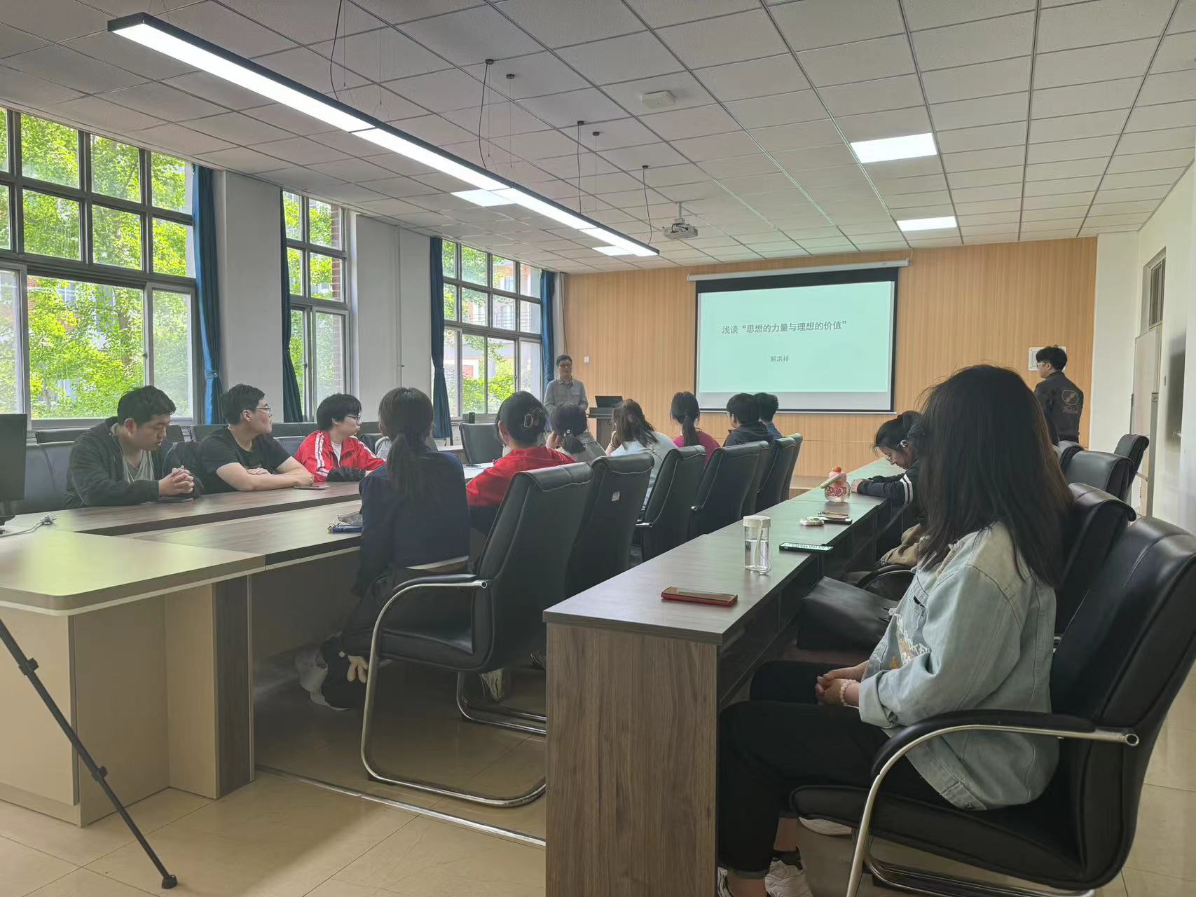 为充分发挥研究生导师的教书育人作用,在传授科学文化知识的同时,主动影响和带动研究生德智体美劳全面发展、健康成才,4月26日上午10:00在滨海中校区4-204会议室,理学院举办了首场“渤海风”研究生学术文化季——崇师论道之师友相约“下午茶”活动,本次活动由理学院化学系副教授、硕士研究生导师解洪祥老师担任主讲人,进行了题为“浅谈‘思想的力量与理想的价值’”的交流分享,研究生辅导员石越主持会议,理学院全体一年级研究生和其他年级研究生代表、其他学院研究生到场参加。