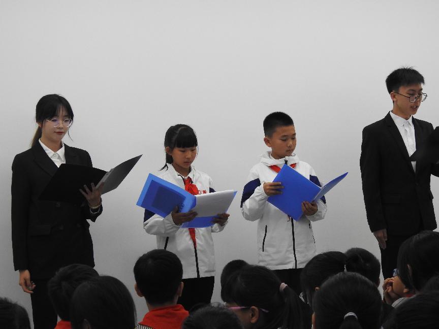 最后由来自天津科技大学的两位学生以及来自欣嘉园实验小学的两位学生共四名同学一同完成朗诵作品《科技筑梦,强国有我》。正如诗句内容所说,他们正站在科技与知识的殿堂,见证新的一代期许的梦想。是的,这些五年级的孩子们也许对这些专业知识尚且一知半解,但是科学创新的种子已经在他们的内心悄然播种,有朝一日会在未来的破土而出,继续扛起时代重担,为祖国建设贡献力量。