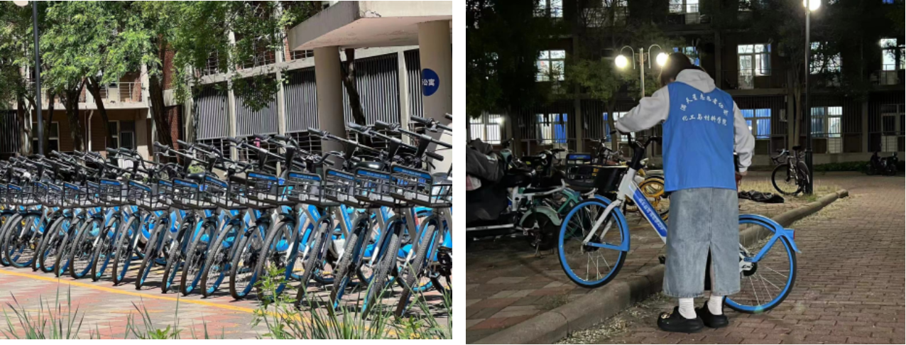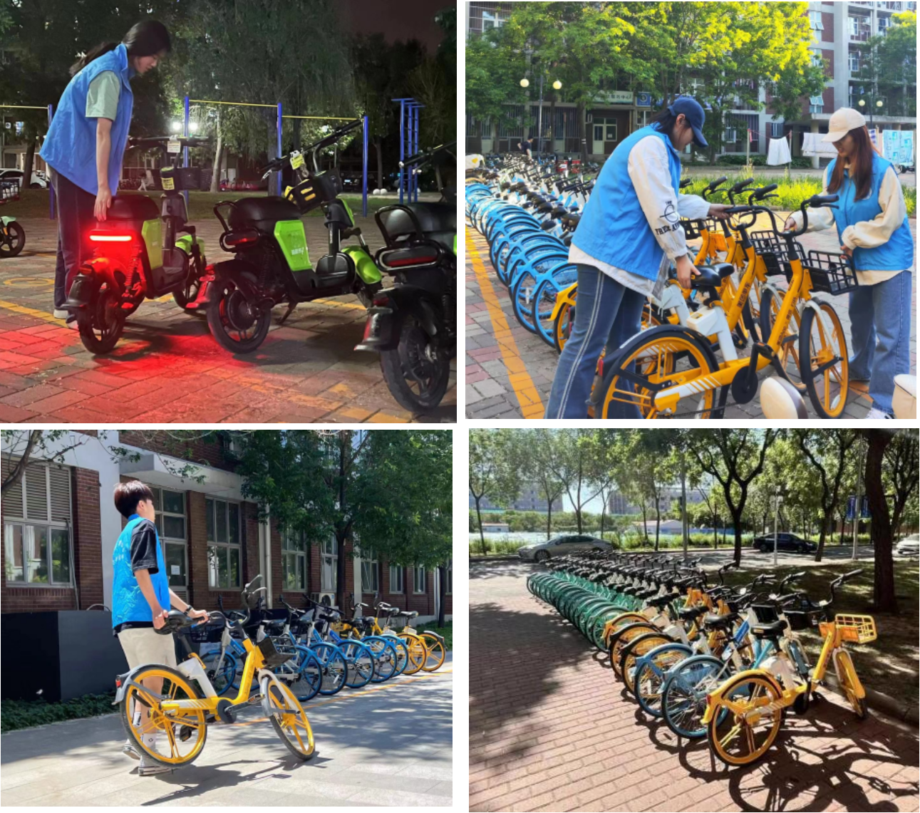 活动中,“蓝马甲”们对校园内随意停放的共享单车进行了规整,将占道、乱停乱放的共享单车推到指定停放点并摆放整齐,并认真清理单车上的灰尘和垃圾,确保单车干净整洁,便于师生使用。他们在规整的同时还不忘记提醒同学们规范停车,引导同学们自觉遵守停放规则,积极维护校园骑行秩序,争做文明校园的建设者。