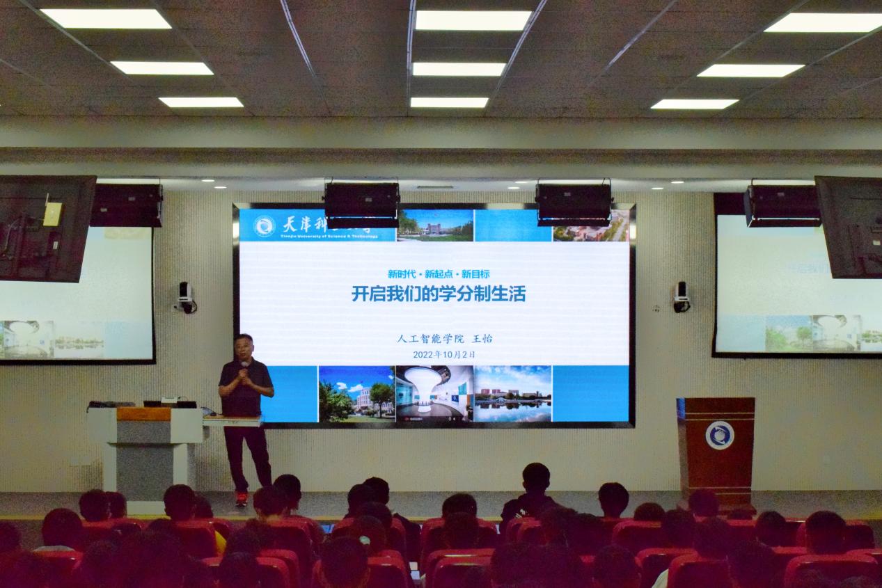 假期期间,为让人工智能学院大一新生更好地了解大学教育特点、规划大学生活,中院图书馆第一报告厅举行了主题为“新时代-新起点-新目标”的新生学分选课座谈会,教务处副处长、质量监控中心王怡老师为同学们指点迷津,带学生们认识了学分制,向学生们阐释了学分制的优势所在,并且着重介绍了我校学分制的相关制度、收费方法、绩点计算等事宜。