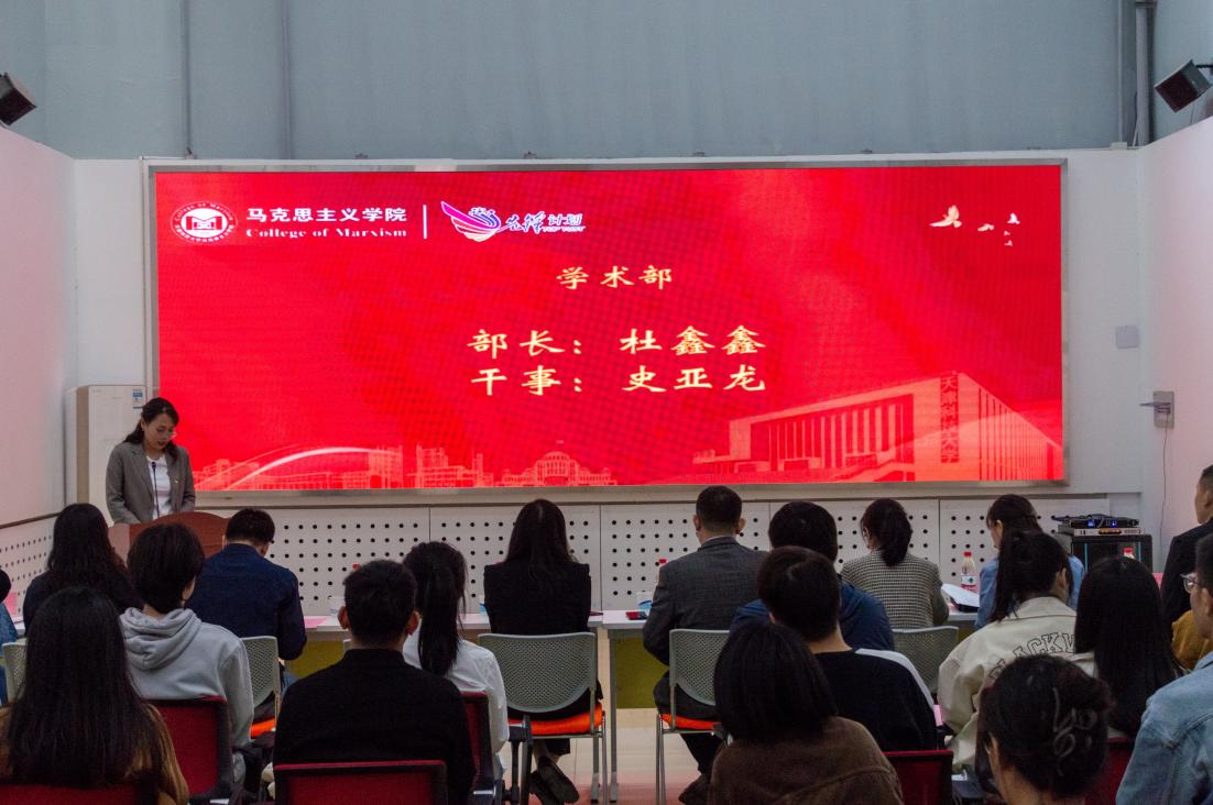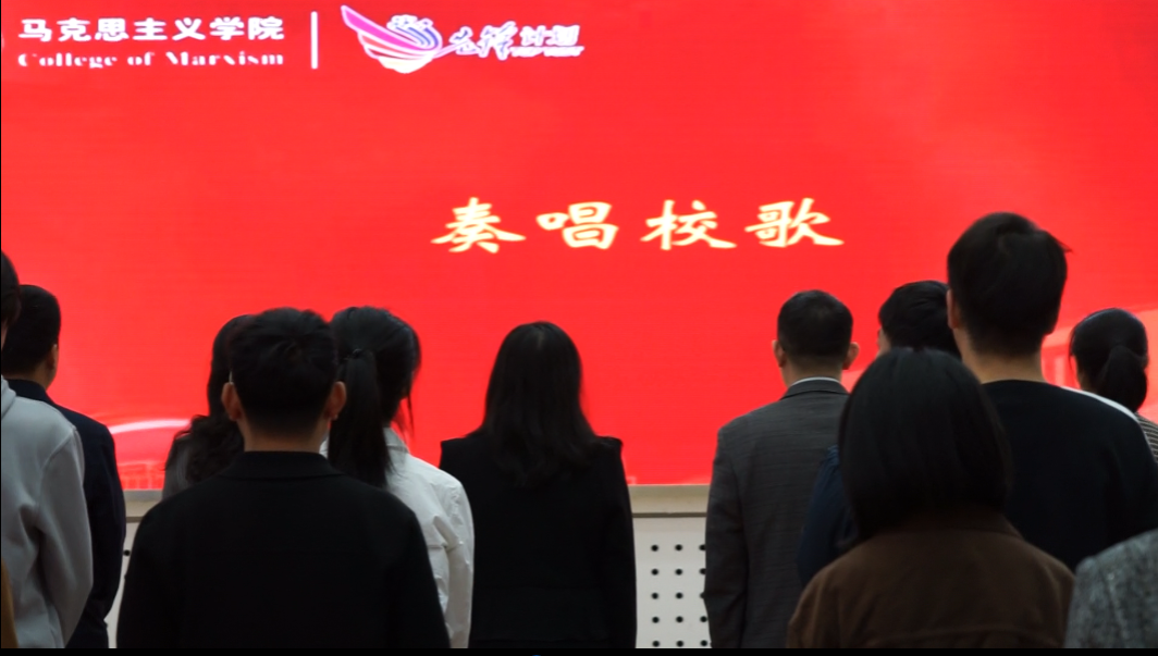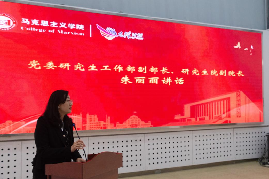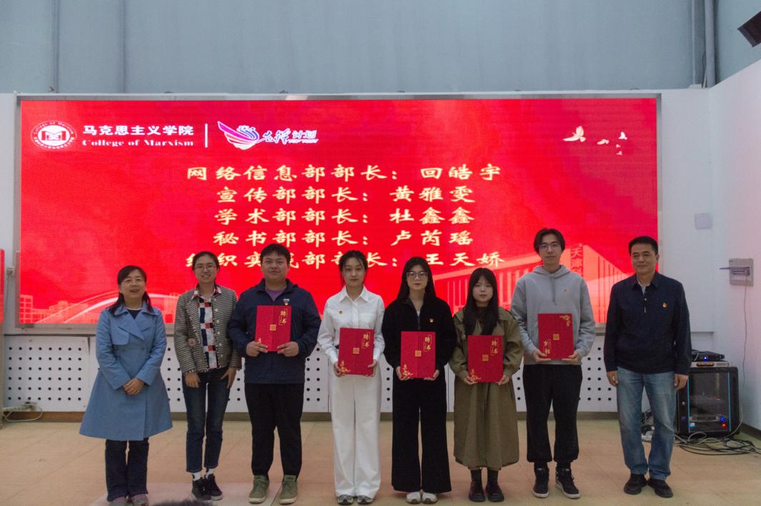 会旗指引方向所在,凝聚奋进力量。朱丽丽为马克思主义学院第一届研究生会授旗。