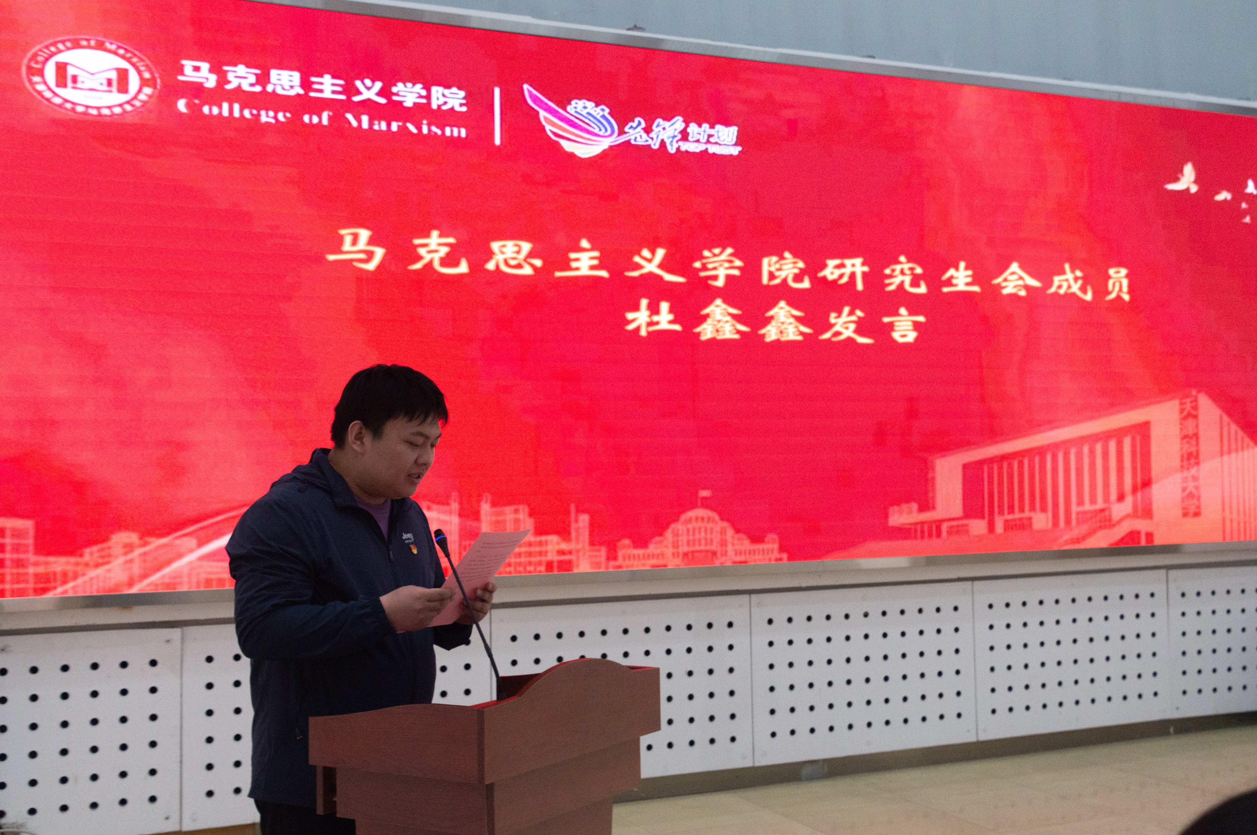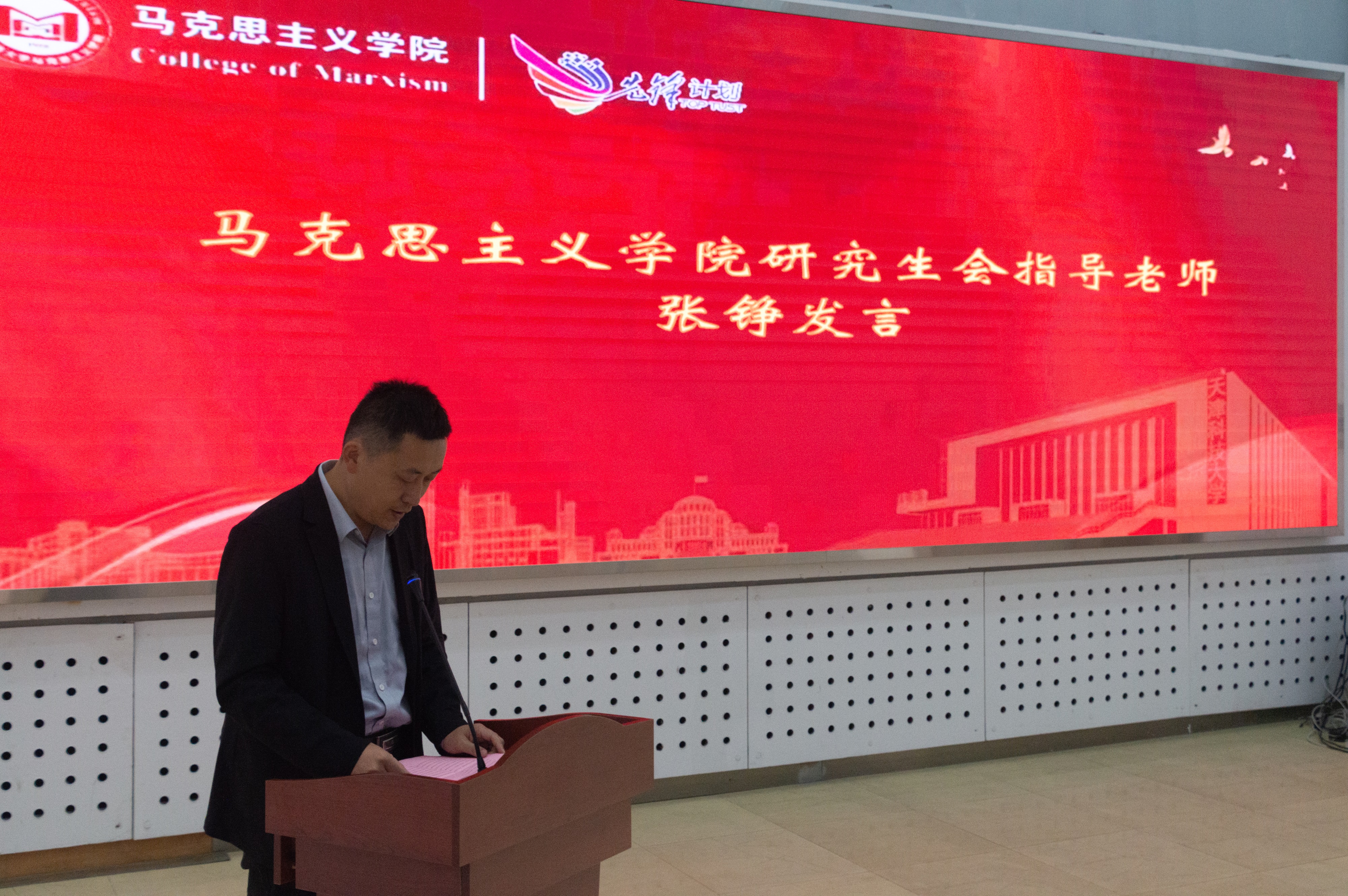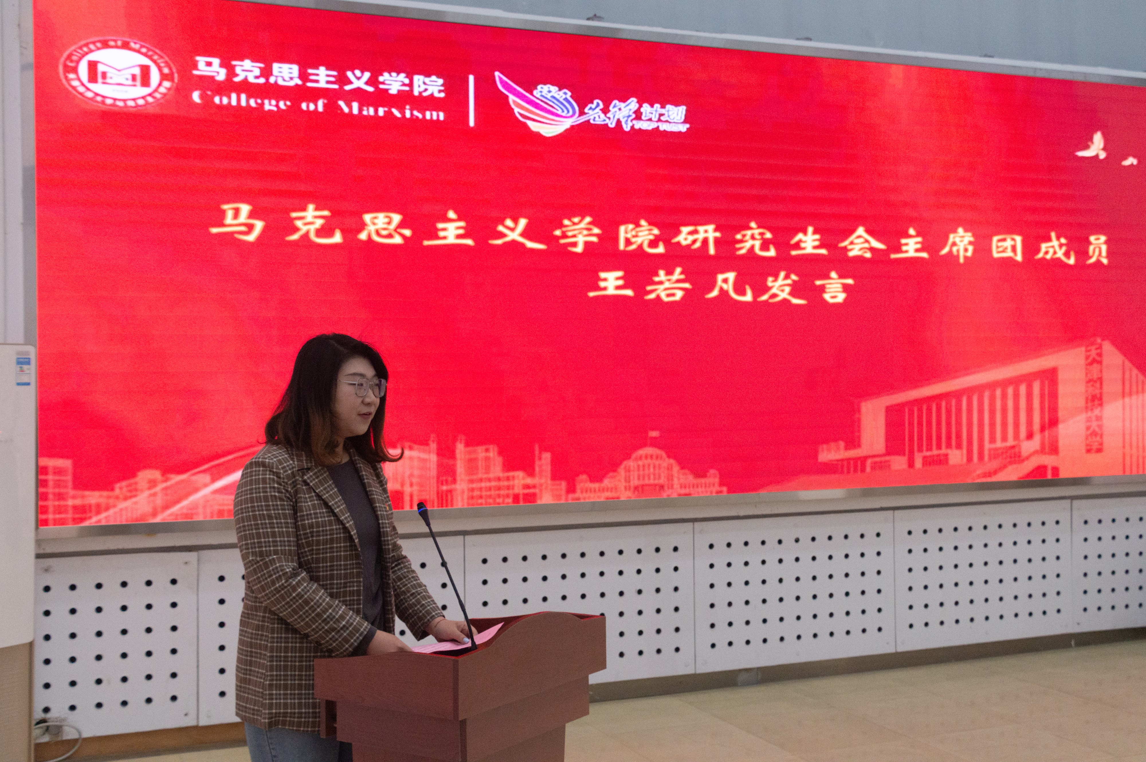 研究生会成员杜鑫鑫、主席团成员王若凡分别作为研究生代表和主席团代表发言,分享开展研究生会创新工作的思路举措。研究生会指导教师张铮作为教师代表发言,张老师表示,马院研究生会的成立,如同春日的嫩芽,充满着生机与活力,将与全体师生携手同行,共同书写马院研究生会的辉煌新篇章!