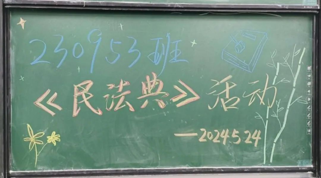 为深入学习贯彻党的二十大精神和习近平总书记视察天津重要讲话精神,践行我校“先锋计划”,庆祝民法典颁布四周年,弘扬法治文化,建设尚法班级,230953班于5月24日举办民法典系列活动。